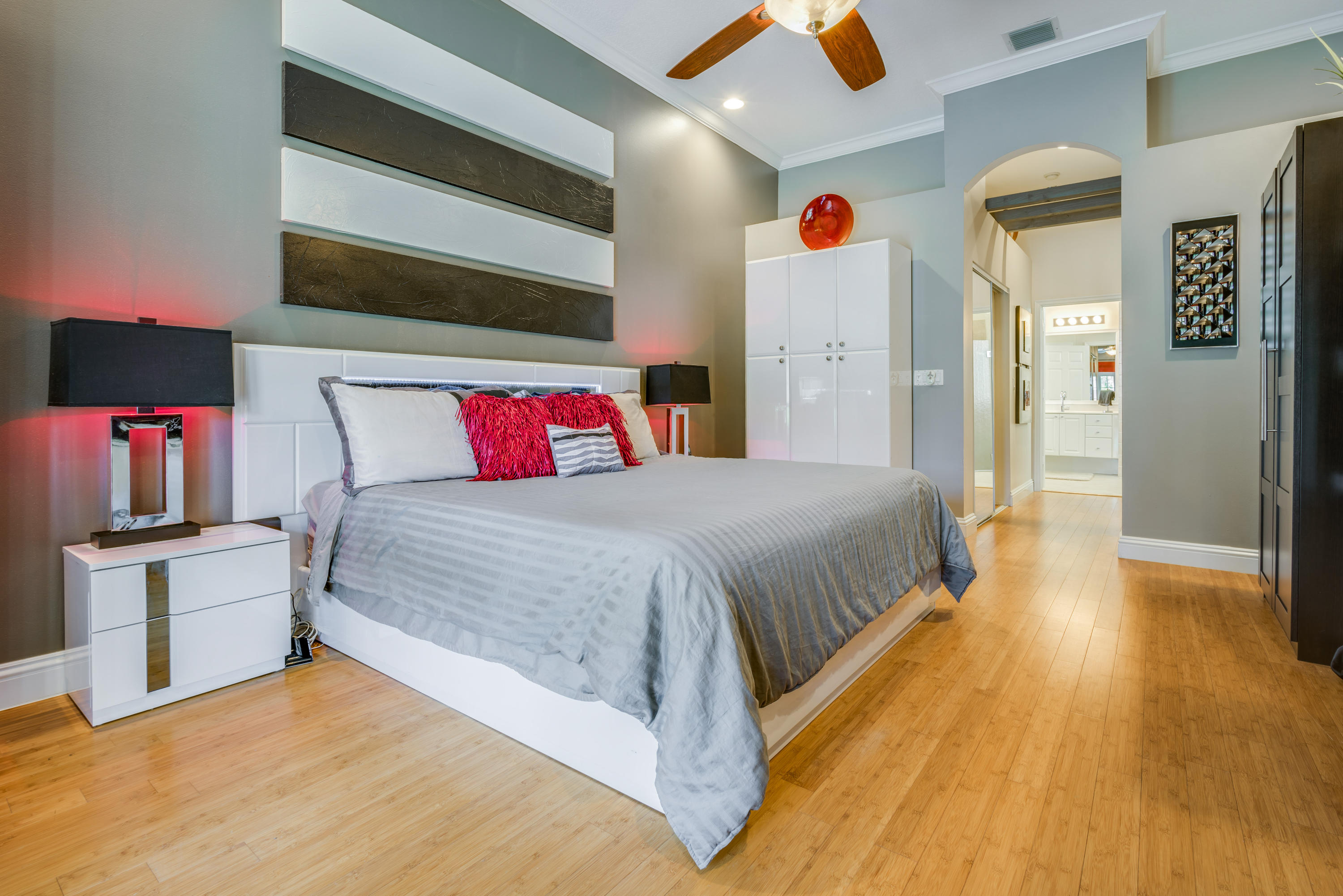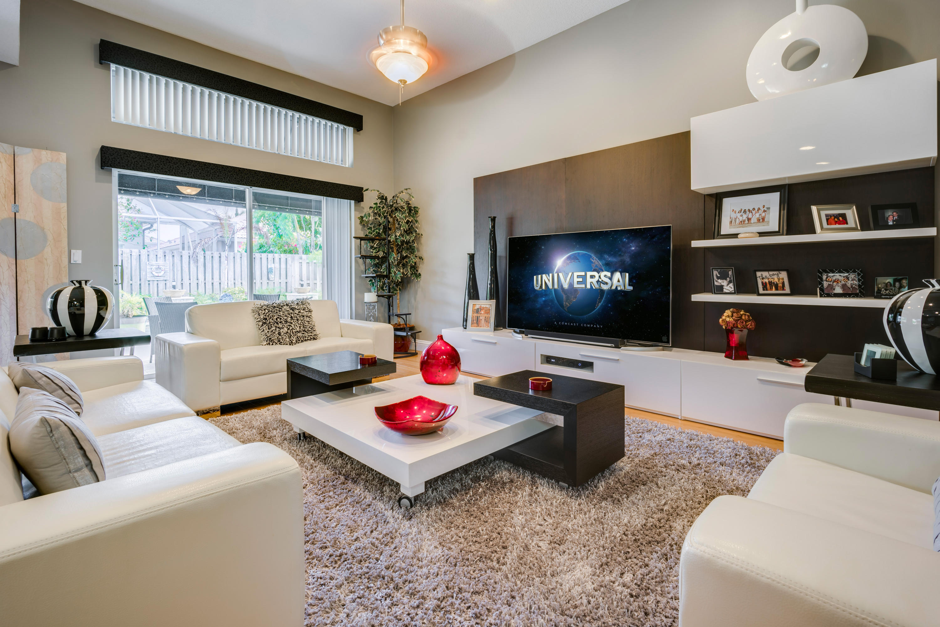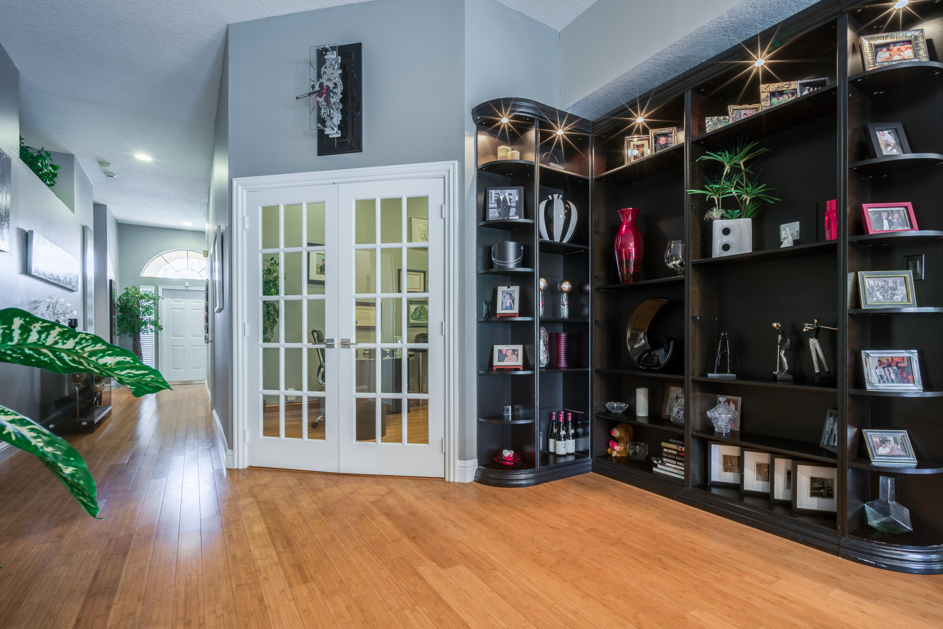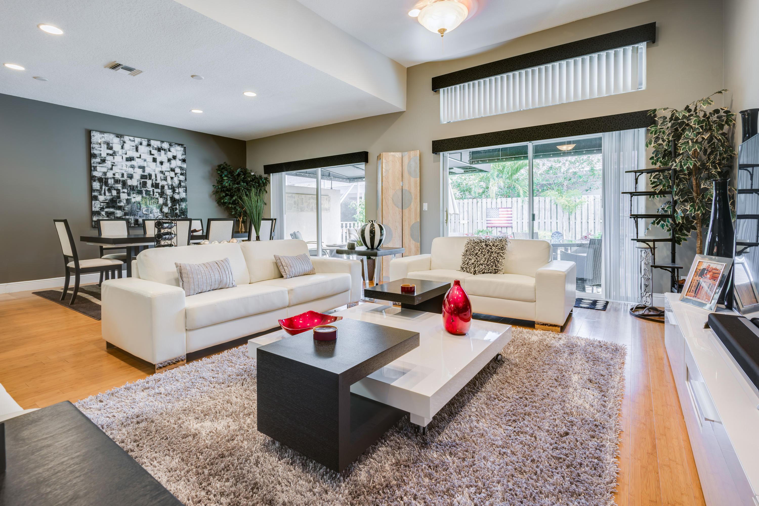 Extraordinary resort-style outdoor living from this luxuriously upgraded, 3BR/2BA + den home located in the private, gated enclave of Catalina in the Lakes of Laguna community. This wide-open home has many desirable features like bamboo flooring throughout main living area, den, and master bedroom, large windows, sliding glass doors, and glass-paned French doors, a chef's kitchen with white cabinets, newer stainless steel appliances, and black granite countertops, newer washer & dryer, an office area with access from the living room and kitchen, and a home security system. The 2015 fully renovated patio has a pool, Travertine marble pool deck, and Sunbrella awning. All furniture and built-ins in the living room (excluding the TV) are included.