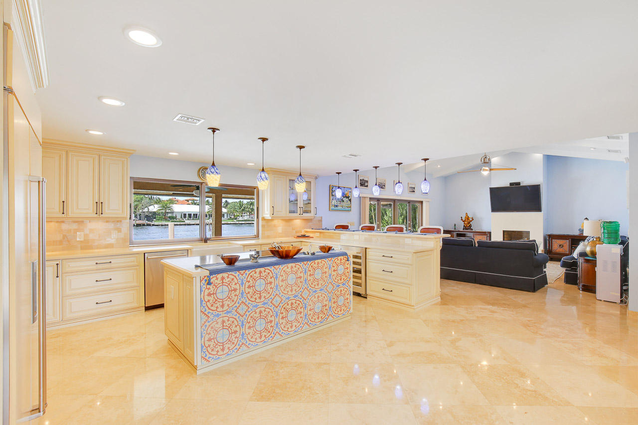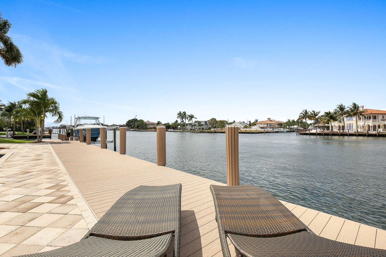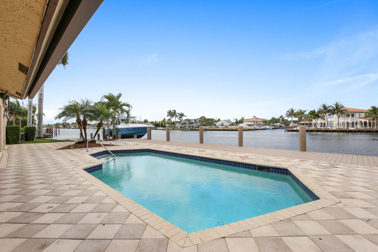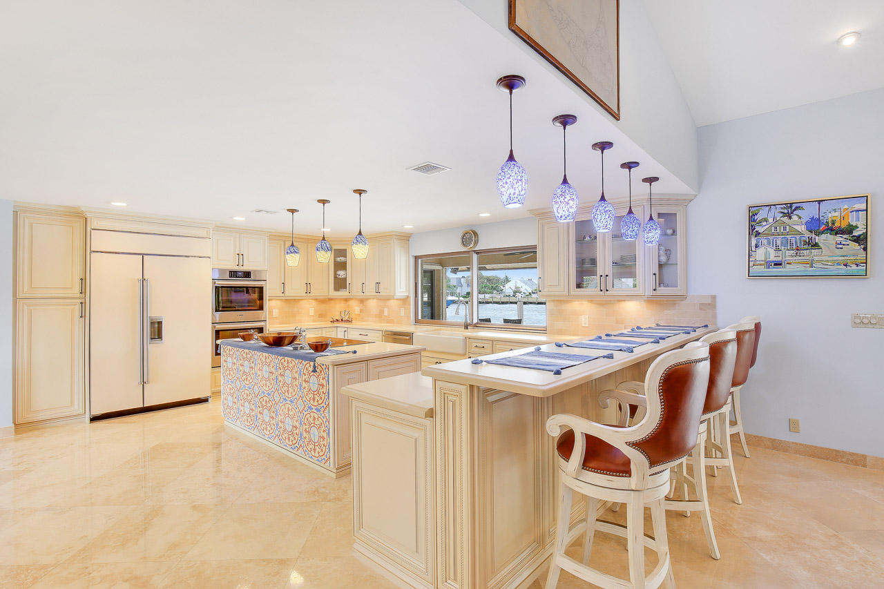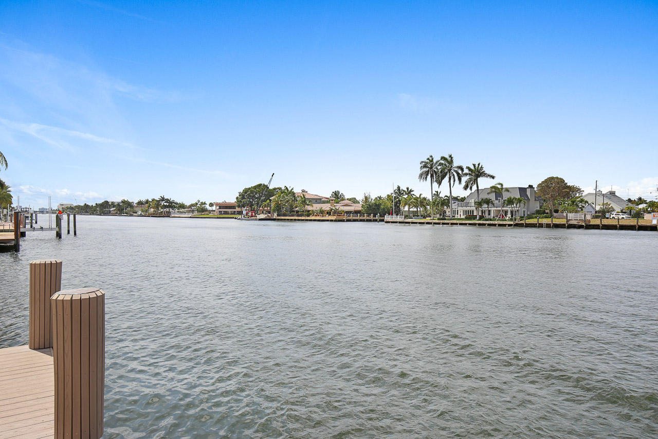 This rare, direct Intracoastal Waterway home has over 150' on the water with dockage and 18,000 pound lift. Sitting on the point, this 2 story home offers 5 bedrooms, 4 and one-half bathrooms, for a total of 4416 square feet. Experience water views from almost every room! High volume ceilings add to the spacious feel. Updates and renovations took place in 2014 and 2015. Kitchen updates include top of the line appliances, wine cooler, ample storage and hand blown pendant lighting. The eat-in kitchen opens into a large family room, perfect for entertaining. The first level of this light filled home opens to an expansive patio and resort style pool with spa. Three guest bedrooms and an office/den are located on the first level. The master suite is a generous 28x13, and features customized...