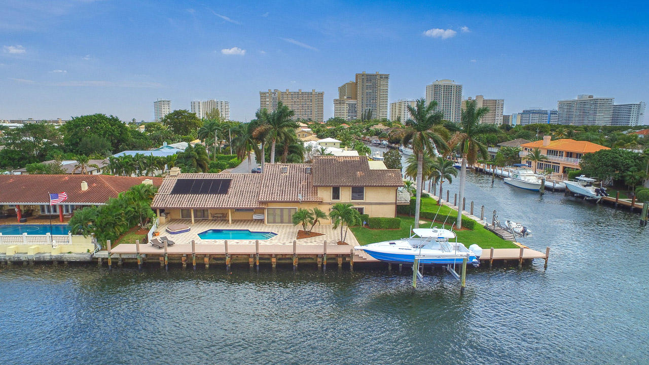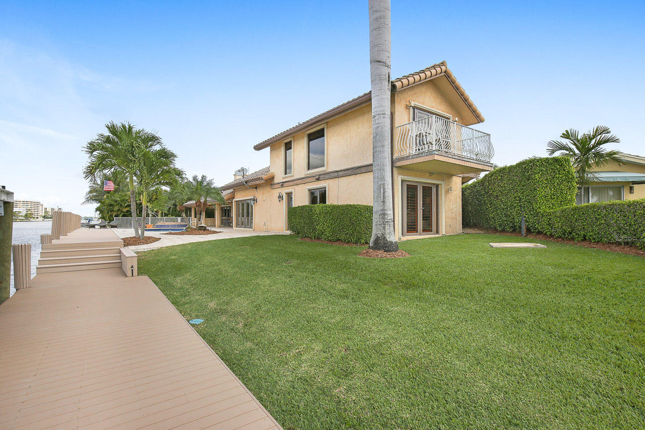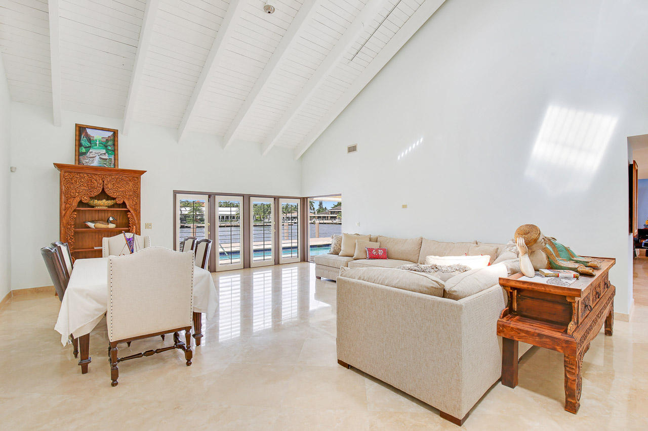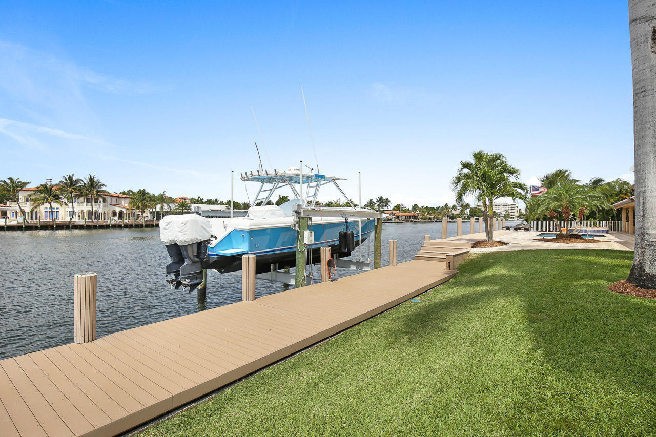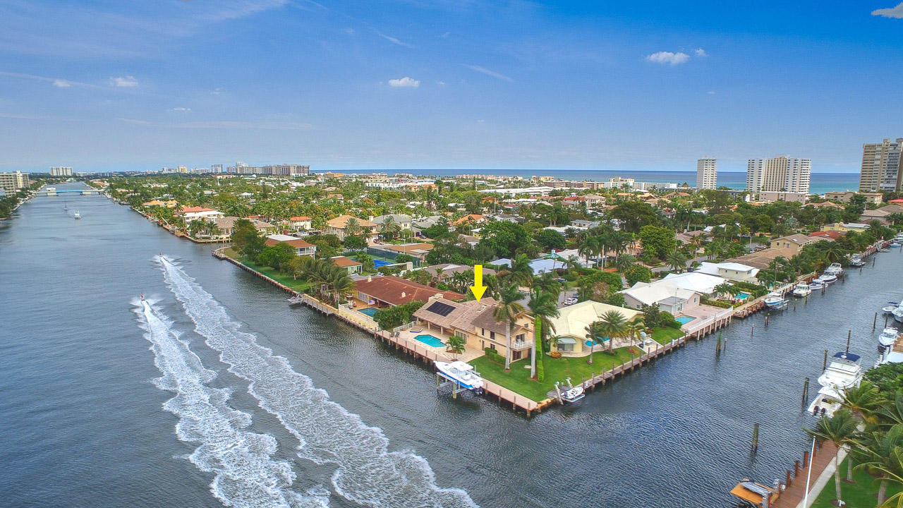 This rare, direct Intracoastal Waterway home has over 150' on the water with dockage and 18,000 pound lift. Sitting on the point, this 2 story home offers 5 bedrooms, 4 and one-half bathrooms, for a total of 4416 square feet. Experience water views from almost every room! High volume ceilings add to the spacious feel. Updates and renovations took place in 2014 and 2015. Kitchen updates include top of the line appliances, wine cooler, ample storage and hand blown pendant lighting. The eat-in kitchen opens into a large family room, perfect for entertaining. The first level of this light filled home opens to an expansive patio and resort style pool with spa. Three guest bedrooms and an office/den are located on the first level. The master suite is a generous 28x13, and features customized...