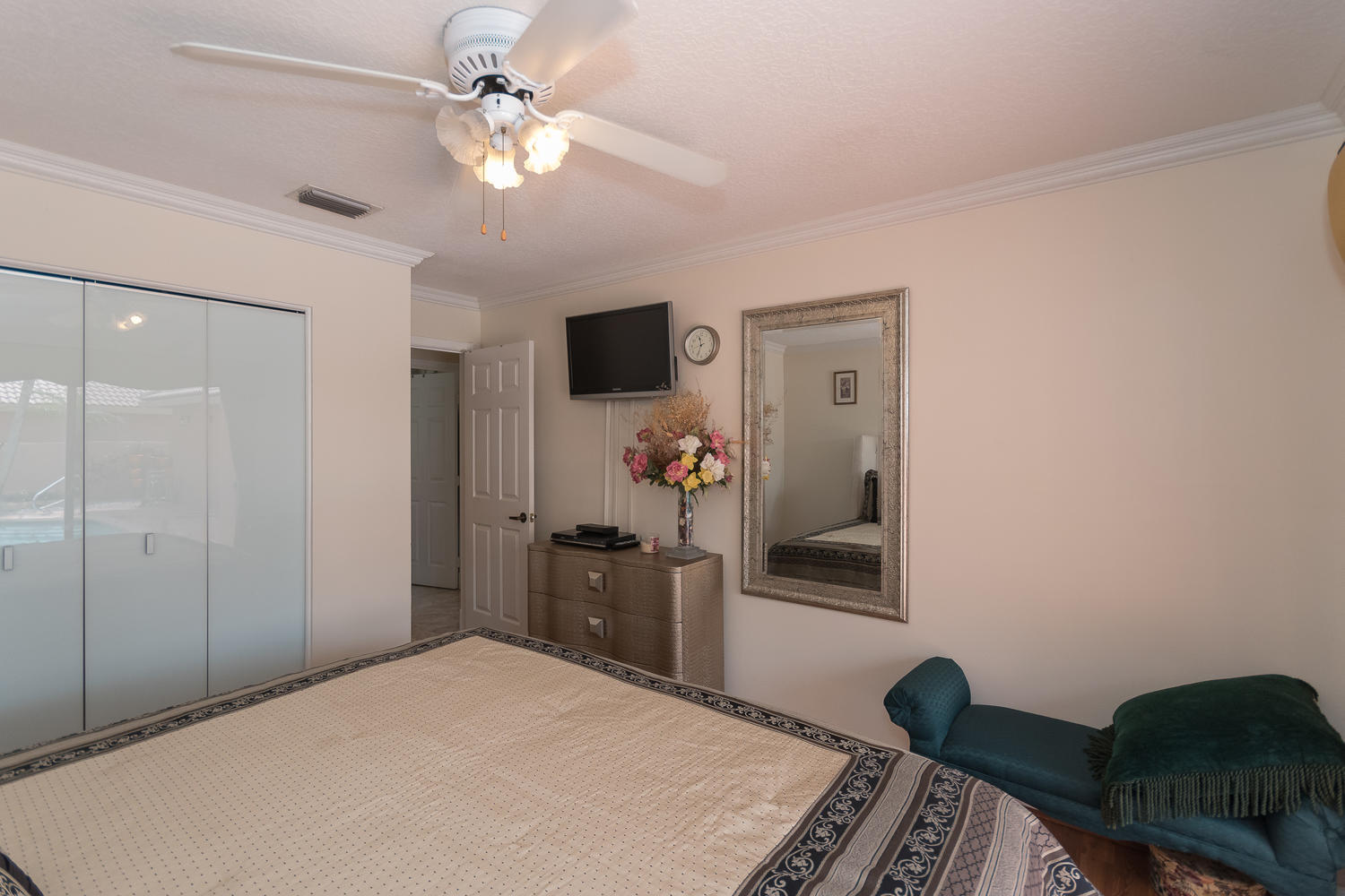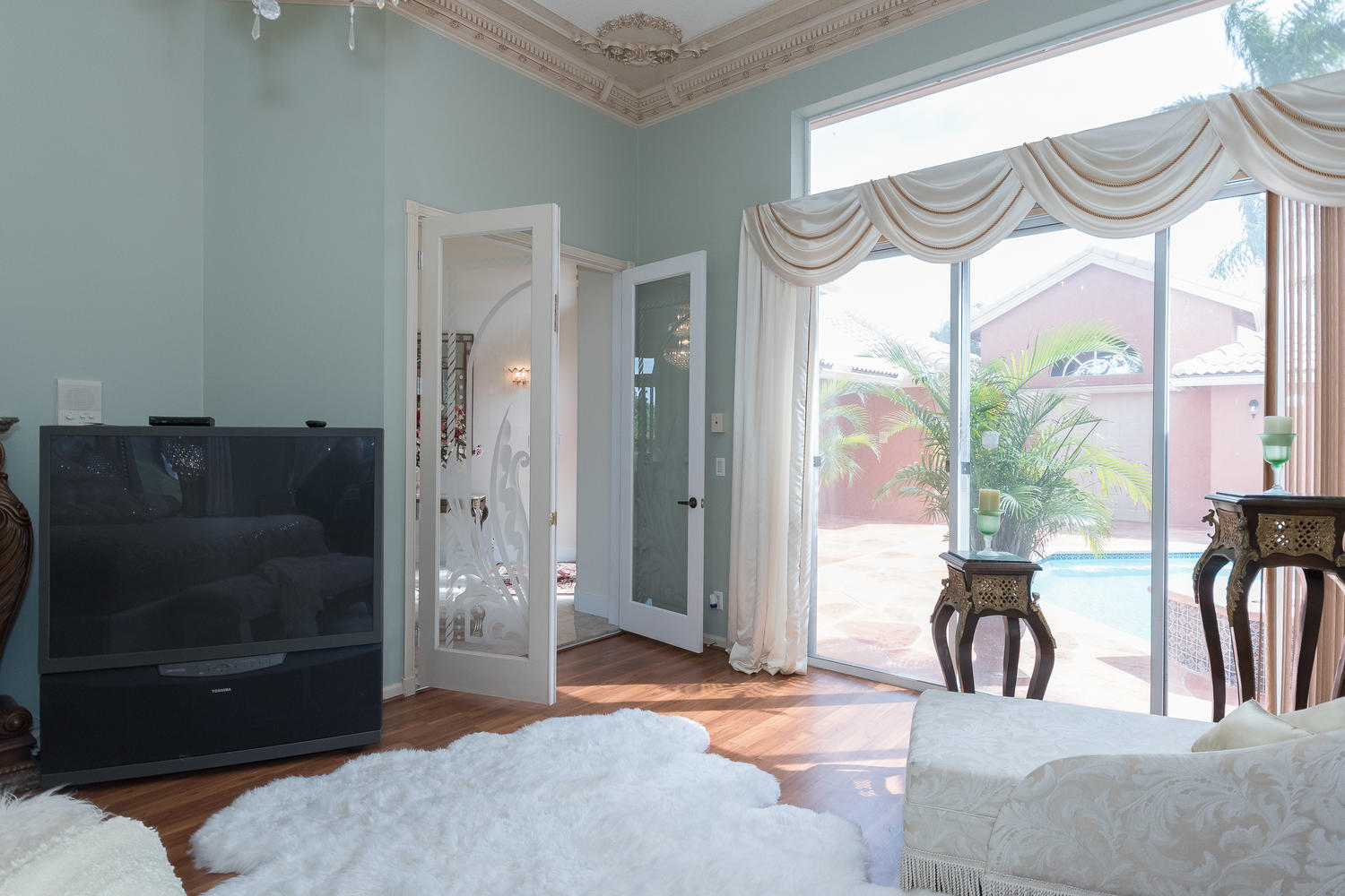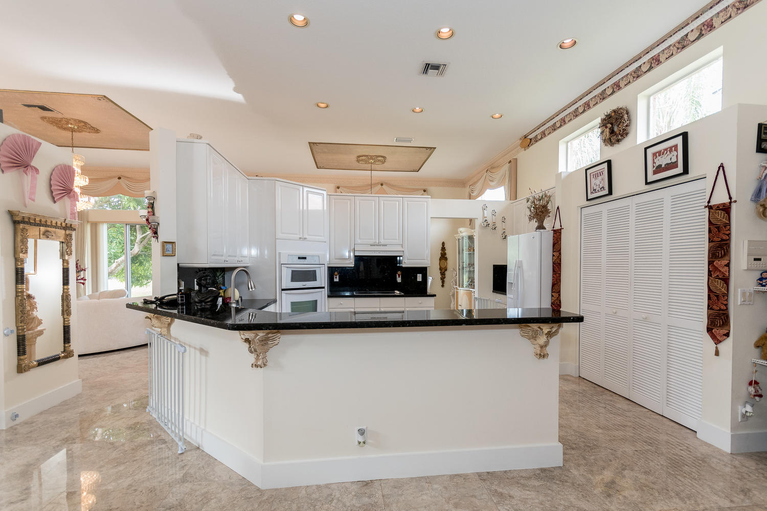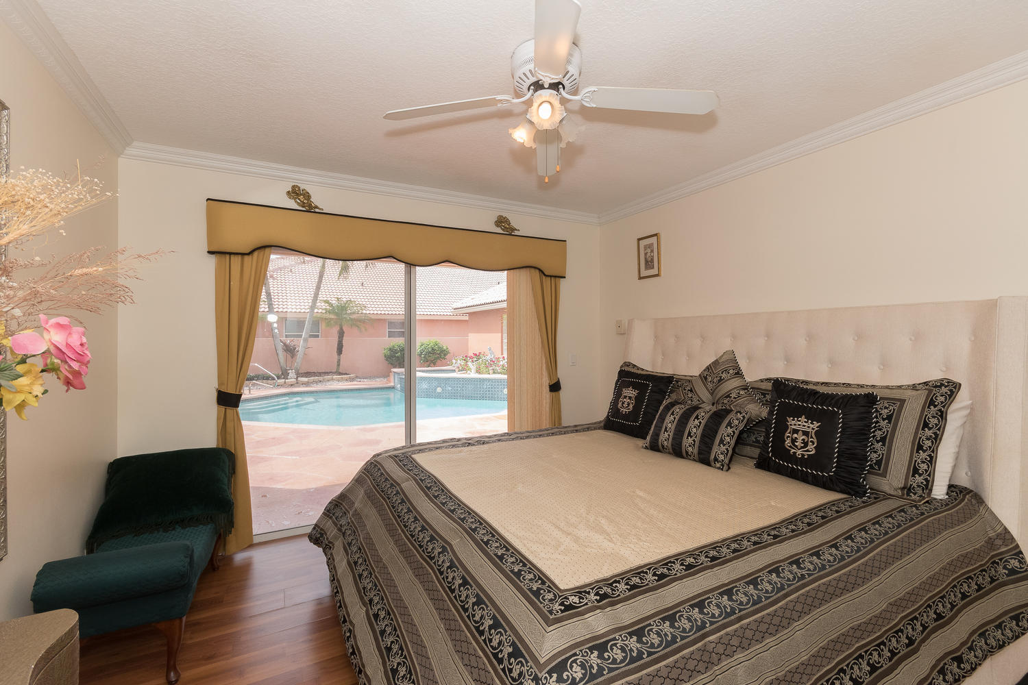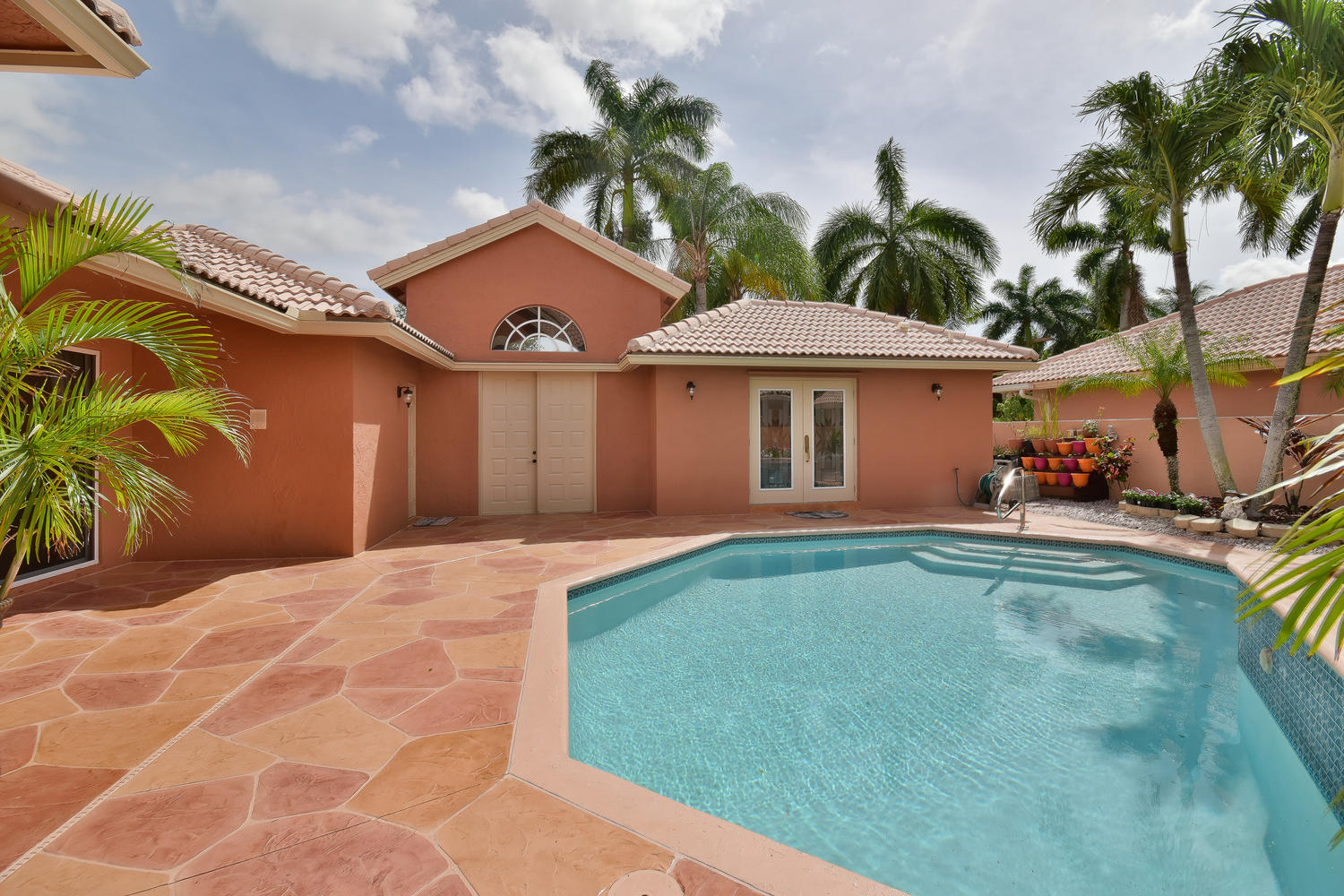 Private Paradise Oasis! Pristine classic courtyard home-beautiful pool+heated spa*Incredible design with high ceilings*Granite+white designer cabinets in kitchen*Marble Floors+Custom Finishes*Spacious living space*4BR/3BA Courtyard home-wonderful open floor plan!Separate guest-house includes bedroom+full bath.Pool/heated spa are in courtyard-maximum privacy+separate rear yard*Updated Master bathroom-full size jacuzzi tub+large separate shower*Enjoy eating in dinette area or at counter or separate dining room where you will have plenty of room to entertain and relax.The master bedroom,guest house,family room and bedroom #2 all overlook private walled-in courtyard. This is Florida living at its finest!Clubhouse guard gate,tennis,fitness+resort-style pool. HOA includes internet+premium TV.
