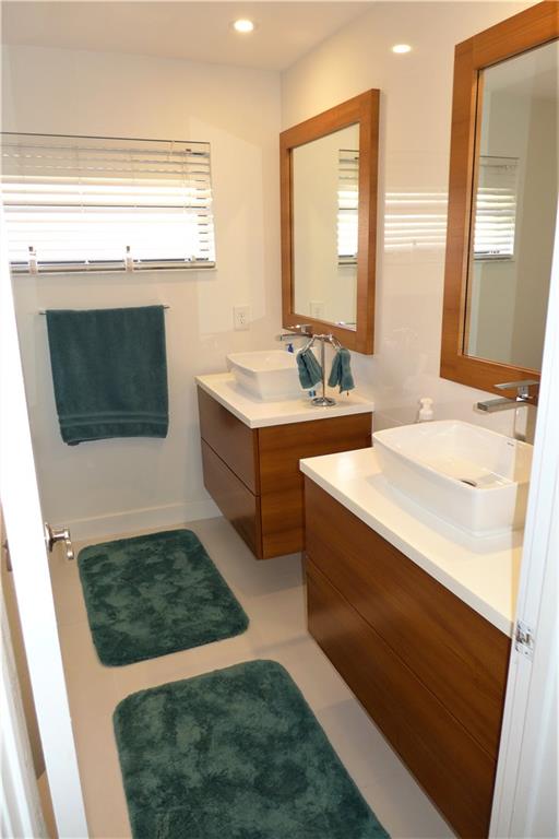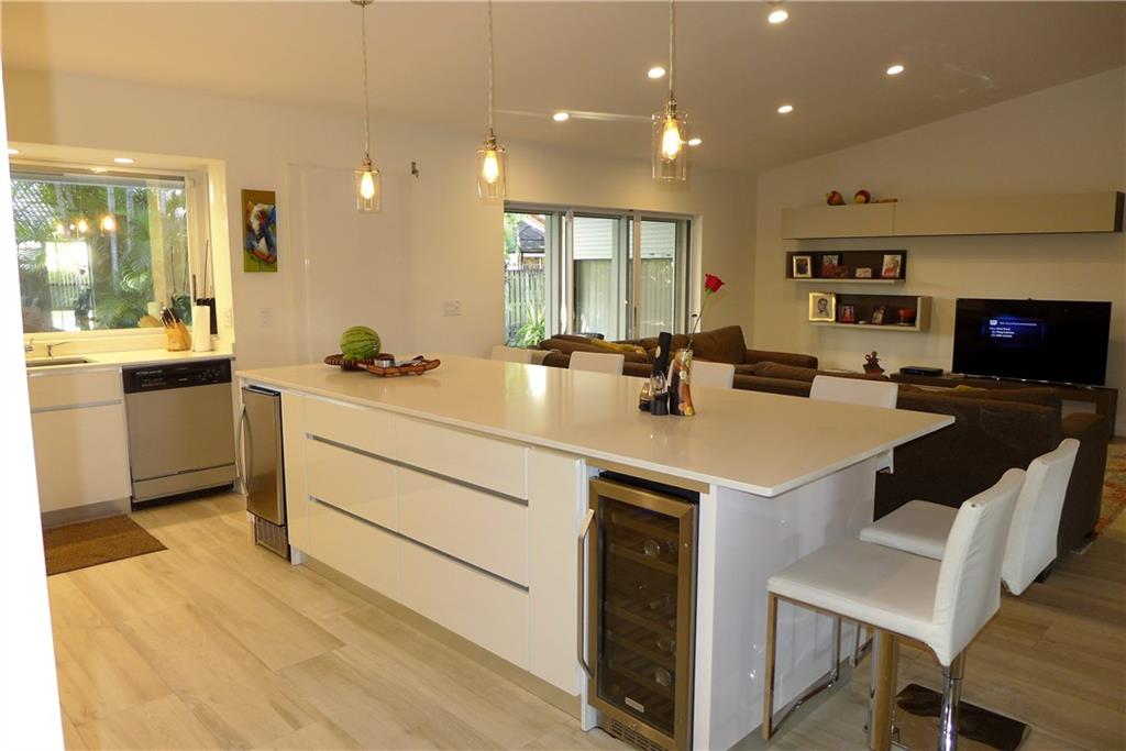 Designer Masterpiece! Featuring porcelain beach wood tile throughout entire home, floated ceilings, modern high-end kitchen w/ quartz counters & island, pantry,formal dining room! Master boasts 2 walk in closets & incredible en suite w/ dual sinks, shower & soak tub! Split floor plan featuring another master & 2 more oversized bedrooms. Lush landscaping surrounds the heated pool for privacy, covered patio for rainy BBQ's, cabana half bath, Electric Hurricane Shutters & Excellent Schools! Must see!