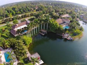 Water ski & Jet ski from your own backyard. Boat dock on your private water ski lake. Master house has 6 Bedrooms and 4 bathrooms , a study , and great room. The guest house has a full kitchen and great room on the side of the house. Almost every room overlooks the pool and lake. This house offers a dock with lift that has electric, 3 car garage, 5 zone Air Conditioning, new stainless appliances in both houses, Jerusalem Stone flooring, upgraded kitchen and Over 3000 sq. ft. of pool and patio area. The over sized master bedroom offers a Sauna Steam room. This house has it ALL!