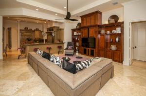 Fall in love with this majestic lake front custom built one story estate pool home in the prestigious Grand Estates section of The Oaks of Boca Raton! Sited on a .34 acre lot the expansive floor plan, with an extensive focus on architectural detail, is ideal for all! 4BR & 4.5 baths plus library, exercise room & a wonderfully spacious family room adjacent to the top-of-the-line (Wolf & Sub Zero) chef's kitchen. With myriad desired ''extras'' including coffer & volume ceilings, handsome custom built-ins, marble flooring unifying the public areas, separate master bedroom wing w/spa like bathroom, Bose sound, tropical pool setting, impact glass windows & whole house generator this well-maintained home (including being newly painted inside & out) is perfection & in absolute move-in condition.