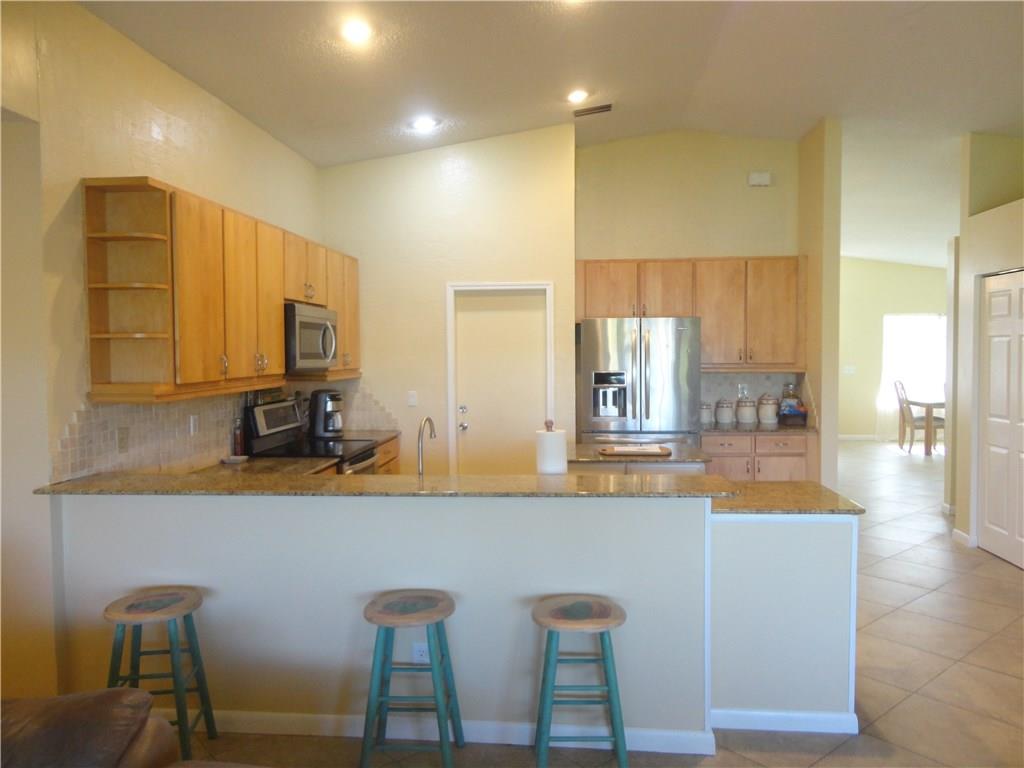 This Beautiful waterfront 3 bedroom 2 bath home features a gorgeous lake view, large newly screened patio, 2 car garage, 20x20 tile, freshly painted inside and out, kitchen with center Island and granite counter tops, both bathrooms remodeled in 2005, central ac 2013, water heater 2013, large walk-in closet in master bedroom vaulted ceilings, new closet doors and so much more