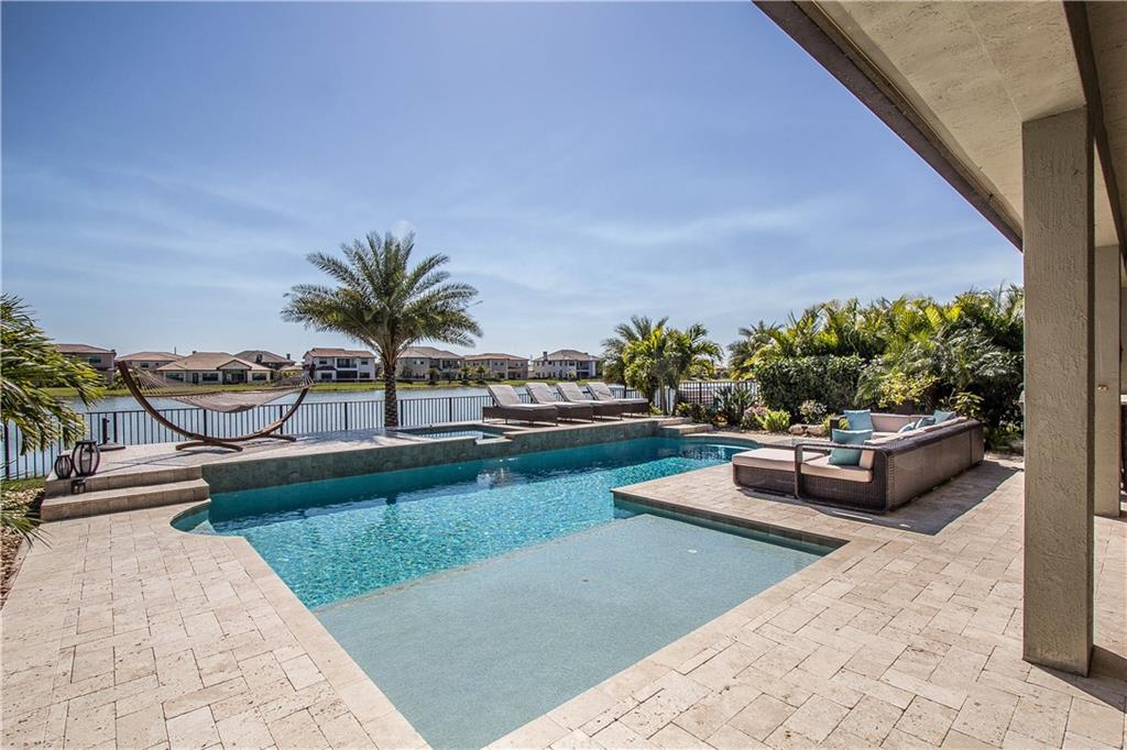 WATERCREST LAKEFRONT SOMERSET EXPANDED MODEL WITH CUSTOM POOL & SPA. LOOKING FOR NEW CONSTRUCTION BUT DON'T WANT TO WAIT TO BUILD? DESIRABLE OPEN CONCEPT FLOOR PLAN LEADS TO A CUSTOM POOL/ SPA WITH TRAVERTINE PAVERS & SUMMER KITCHEN. OUTDOOR INSECT MIST SYSTEM. PERFECT FOR ENTERTAINING. 4 BED/3 1/2 BATHS + OFFICE/DEN. KITCHEN WITH SS APPLIANCES, DOUBLE OVENS, LG ISLAND, GRANITE,IMPACT GLASS. FENCED YARD W/EXTENSIVE LANDSCAPING FOR PRIVACY, TRULY A TROPICAL PARADISE WITH A RELAXING VIEW OF THE WATER.