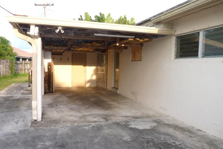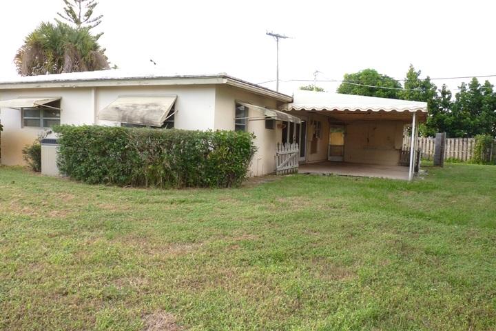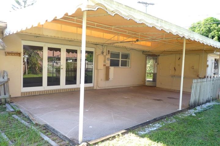 Single family home on a corner lot with a circular driveway and carport. Terrazzo flooring throughout. Living room and dining area share with French doors to a large covered patio. Master bedroom features a walk in closet and private bathroom. Bedrooms 2 and 3 share the hall bathroom. Good sized backyard with plenty of room for a pool. Carport area has extra storage with detached laundry room. Easy showings anytime!
