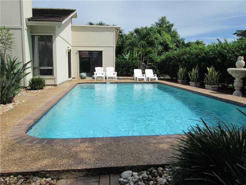Fabulous! This oasis is on a large, excellently maintained, tropically landscaped lot along a canal. Sliding door access to patio from most rooms with view of lush pool area. Vaulted ceilings; clear story windows; wet bar; granite & corian counters; dimma ble recessed lighting thru-out; hi-profile appl; steam shower; abundant closets and cabinets; open, bright layout great for entertaining and family. Media room can be 4th bedroom. Many other quality features described in the downloadable Photo Gallery.