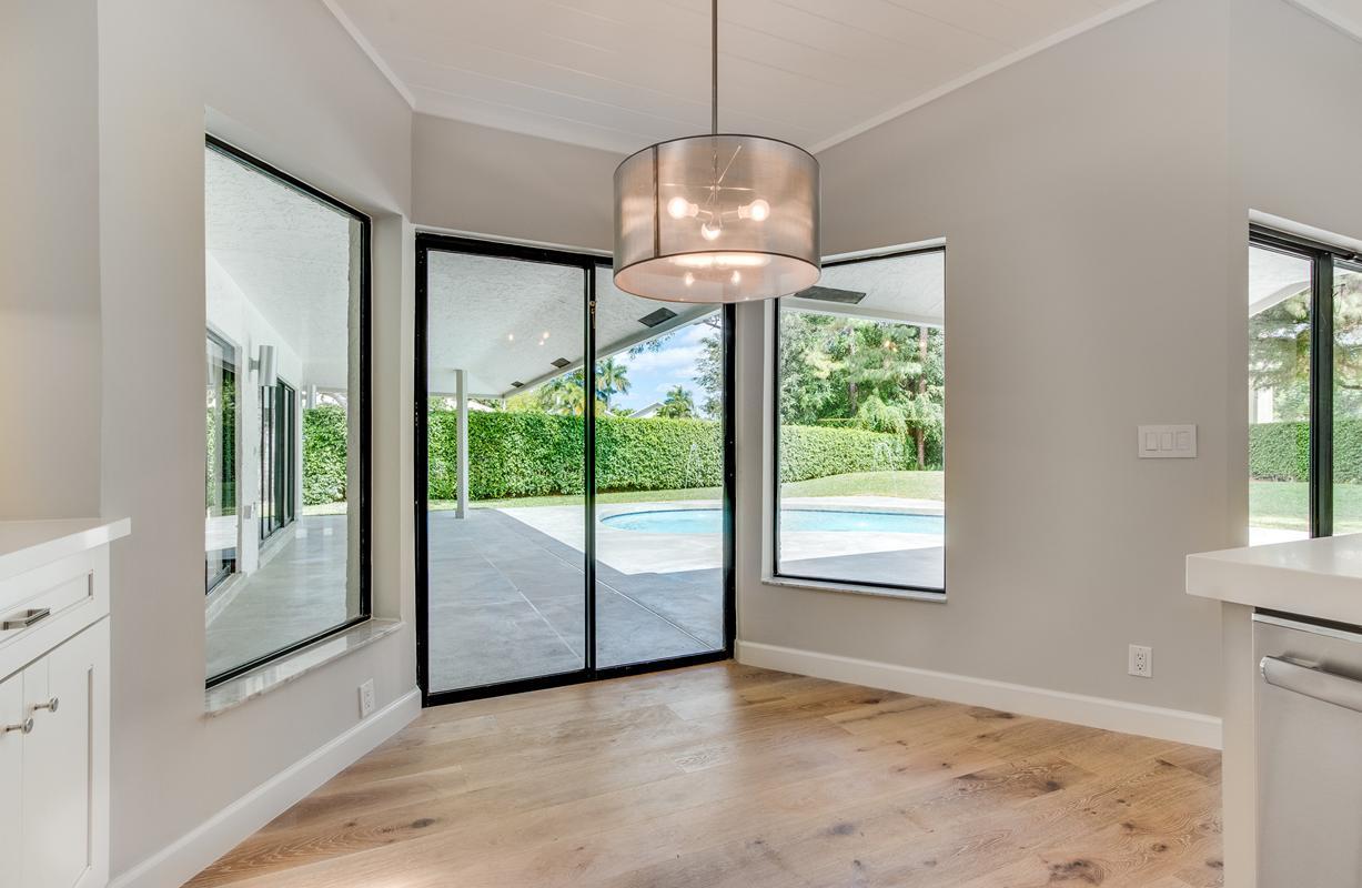 Completely renovated from top to bottom with the latest high-end contemporary finishes, this like new, single story home with split floor plan is situated on almost a one-half acre pie lot in the highly desirable Woodfield Hunt Club. This home is just steps from the best that central Boca has to offer including one of the highest rated school districts in all of Palm Beach County. All new lushly landscaped grounds provide complete privacy, while you enjoy the resort style pool with new deck jets, pool tile and deck finish. The home also has extensive covered overhangs to provide ample shade on those hot summer days. Inside the home you will find brand new white oak wire brushed wood floors with 7 1/2" wide planks in all the main living areas and new baseboards and door casings.