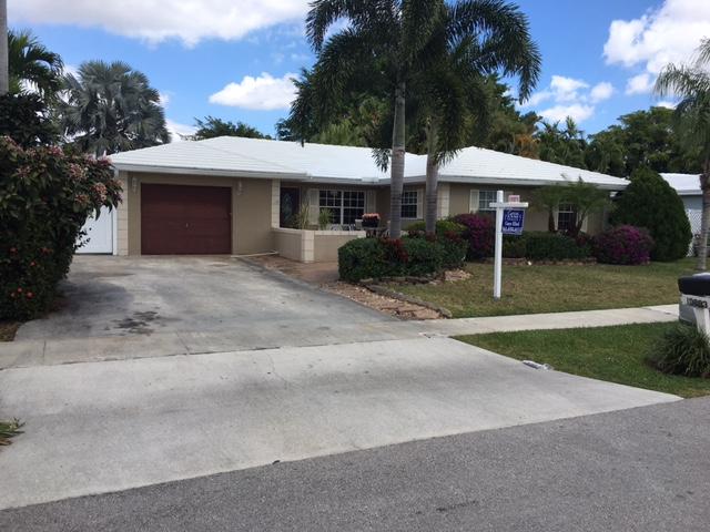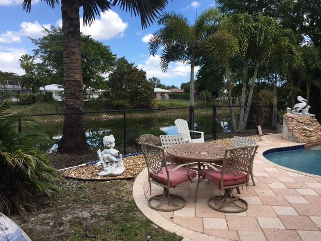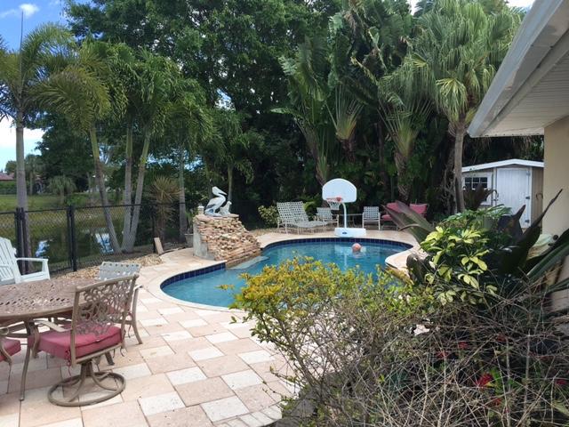 Tropical Paradise awaits you...Amazing waterfront home in Palmetto Pines!!Three bedrooms, two baths and den/office.Newer kitchen with 36'' cabinets. 20'' diagonal-cut porcelan tiles throughout. Amazing newer salt-water pool with waterfall...incredible canal and fountain views!! Covered patio perfect for entertaining. Lots of mature, tropical landscaping everywhere. Very private lot. Property comes complete with in-home video surveillance system.