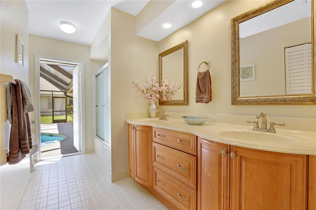 Pride in Ownership shows inside & out! New Electrical Upgrades: LED lights, Decora switches, Pumps, Ext Lights, Fans, etc., 2 Newer A/Cs, w/Sealed Vents & Returns. Plumbing: Toilets, Valves, Faucets, Hose Bibs, Sprinkler & Pool Pumps. Updated Kitchen: Appliances, Thermador Oven, Granite, warm wood Cabinets) & Baths: frameless shower, cabinets, hi-toilets. Plus UR, Workshop area, Accordion Shutters, New Doors, 2005 Roof. Spacious, Clean Designer Features: Bamboo Floors, Etched Glass, Paint.. Move in ready!