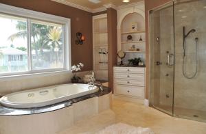 This builder's executive home shows like a model, has the finest finishes never intended for resale. Beautifully staged this stunning waterfront home has a private boat dock with easy ocean access. Gourmet chef's kitchen includes Viking gas stove, Subzero frig, imported Italian granite & stone hand-crafted backsplash. 4th room is office, 3 full baths, open floor plan & fireplace. Two master suites with complete built-in closets. 15 foot ceilings, heated pool, 15KW generator, 500gal below-ground gas tank, 135gal water tank.
