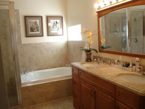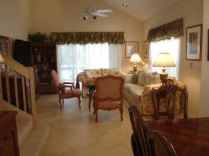 Picture Perfect renovated home w/ MBR on Main. Living Area w/20'' tiles on Diagonal, Kitchen has granite counters & updated appliances. Newer water heater, A/C 6 yrs. Master Bath updated w/ Jacuzzi style tub & newer tile. 2nd floor Jack & Jill Bath has newer tile. Extended Screened-in Lanai is width of house - screened Enclosure extra height for spacious feeling. Hurricane Shutters. Hurricane resistant Garage Door. No rear neighbors for privacy plus common lawn area in rear gives additional privacy. Walk to Pool. Move in and enjoy!