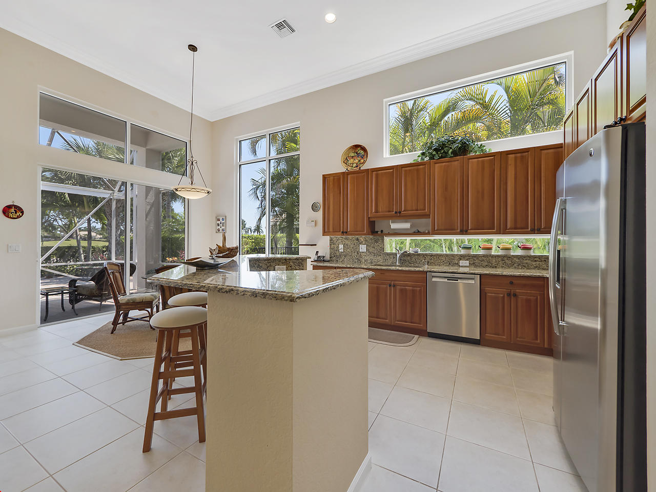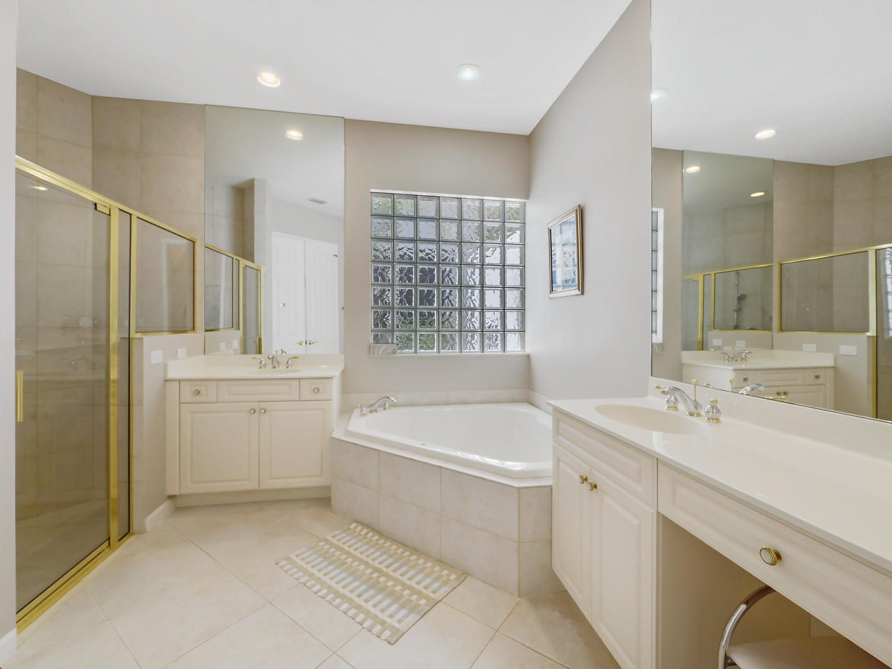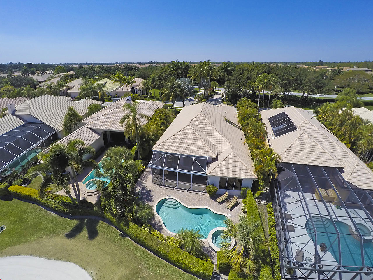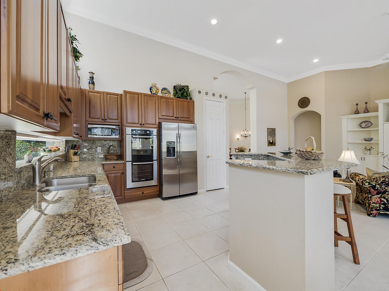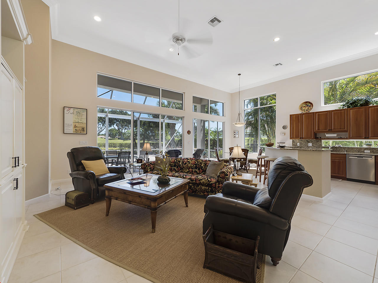 Priced for Immediate Sale! Situated on the 16th Green of The Legend Course, this Home has it all! Don't miss out. Fabulous Outdoor Entertainment Area with Screened and Covered Patio and Open Pool Area with Spa and Water View. The Kitchen, with almost New Stainless Appliances, Granite Counters & Backsplash open to the Family Room with Both Overlooking the Pool and Golf Course. The Master has Double Coiffured Ceiling with Crown Molding and Sliders to the Pool/Patio Area, His & Her Closets and the Master Bath has Corner Roman Tub and Separate Shower with Glass Doors and His and Her Sinks. There are Formal Living and Dining Rooms with Garden Views. Two Guest Suites are in the front of the Home, One with a Private Bath and One with an Atrium. The Den includes Built-in Desk & Cabinets.