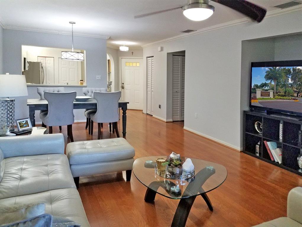 Perfect 2/2 villa-style in the desired Chatham Towne of Jacaranda. Spacious and Clean, immaculate condition. Lots of closet space. Equipped with newer stainless steel appliances. Wood floors throughout the unit. Screened porch for privacy with relaxing view of the pond. Excellent pool area with beautiful greenery surroundings. This is a must see. Ready to move in.