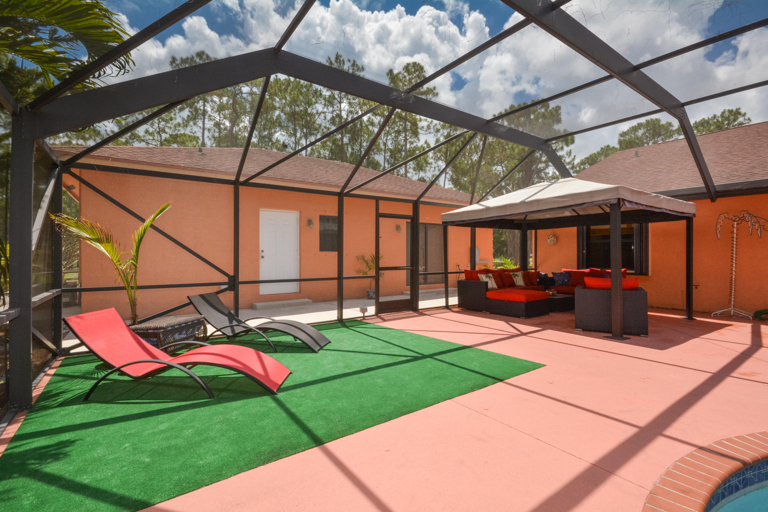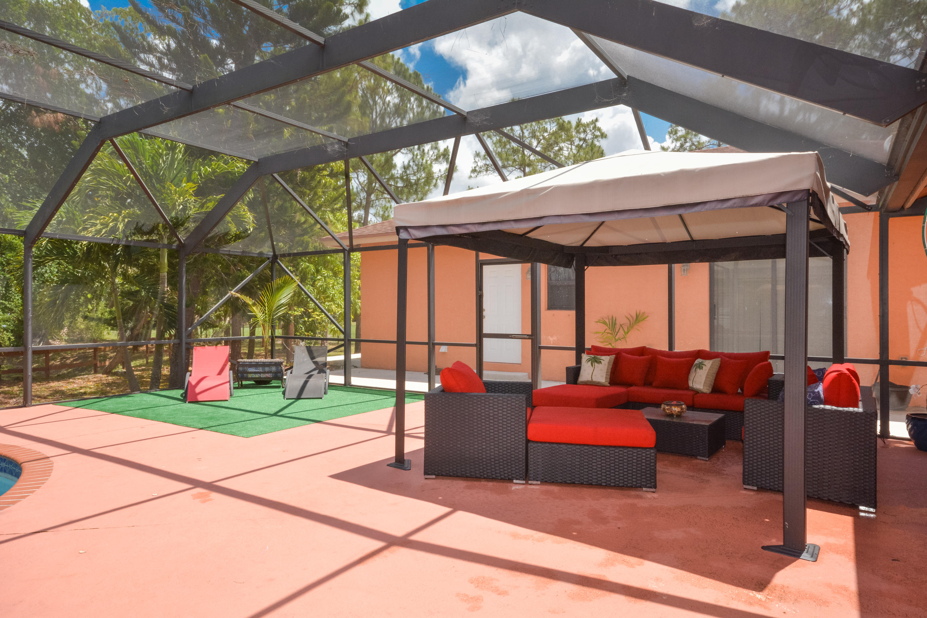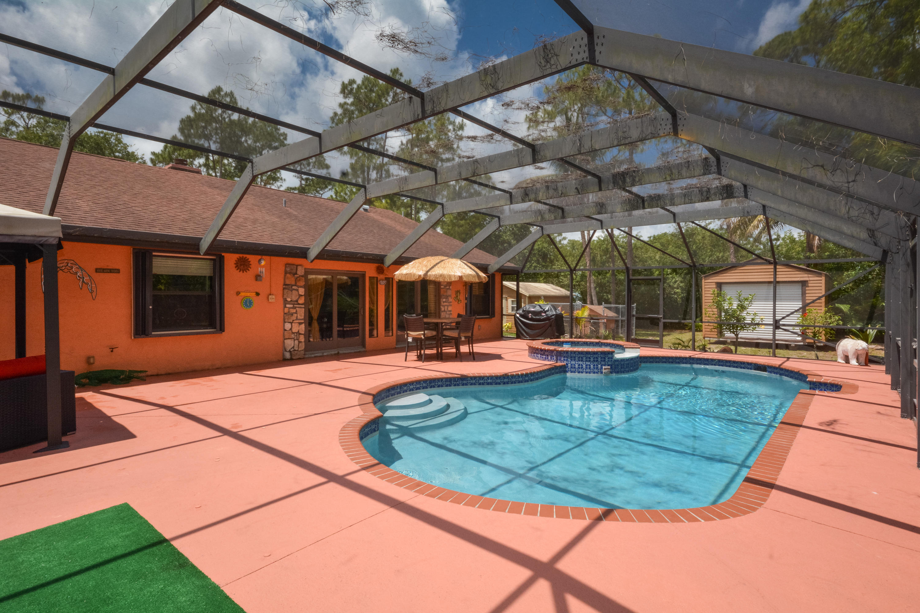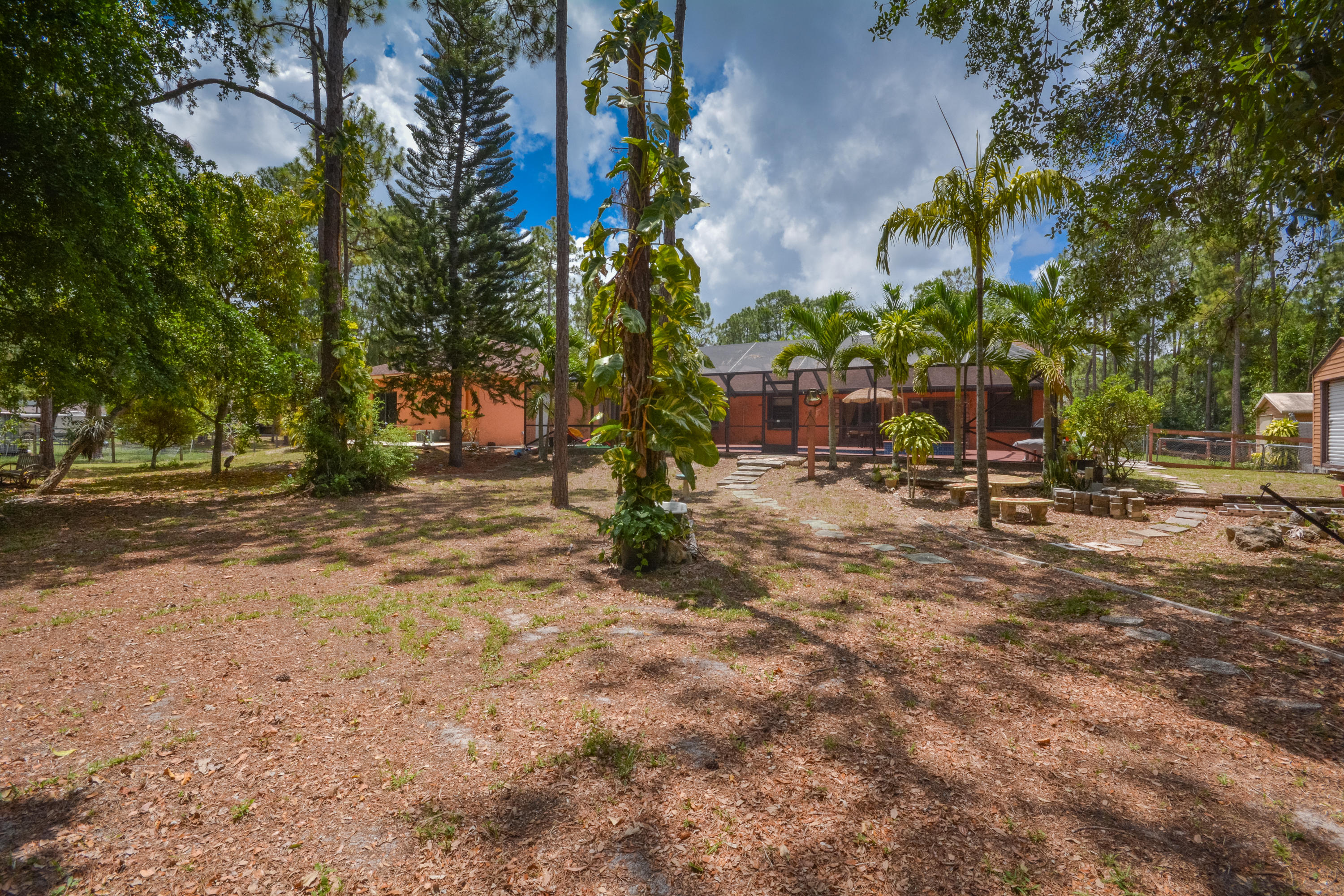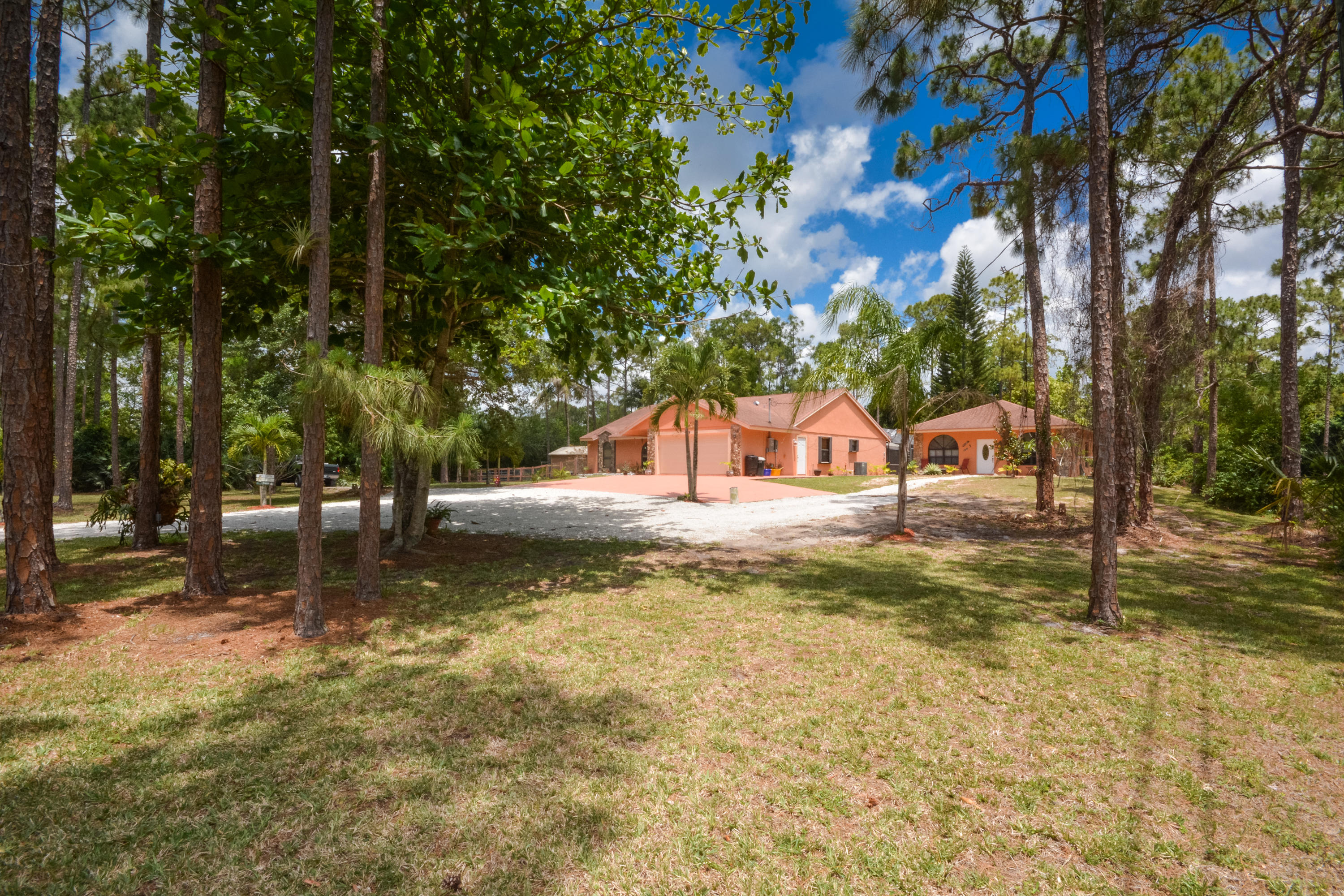 OVER 2 ACRE LOT! PRIVACY FENCED! OPEN DESIGN SPLIT FLOOR PLAN 3BR/2BA/2CG.FOYER ENTRANCE TO LIVING ROOM, OPEN KITCHEN W/SS APPLIANCES. ENCLOSED FLORIDA ROOM. ROOL WITH BABY FENCE AND DOME SCREEN. STABLES! FREE STANDING BUILDING BUILT IN 2009 AND ALL PERMITS CLOSED 2BR/1BA MOTHER IN LAW SUITE. KITCHEN W/ STAINLESS APPLIANCES. TILE AND RENOVATED BEDROOM. STACKABLE W/D.
