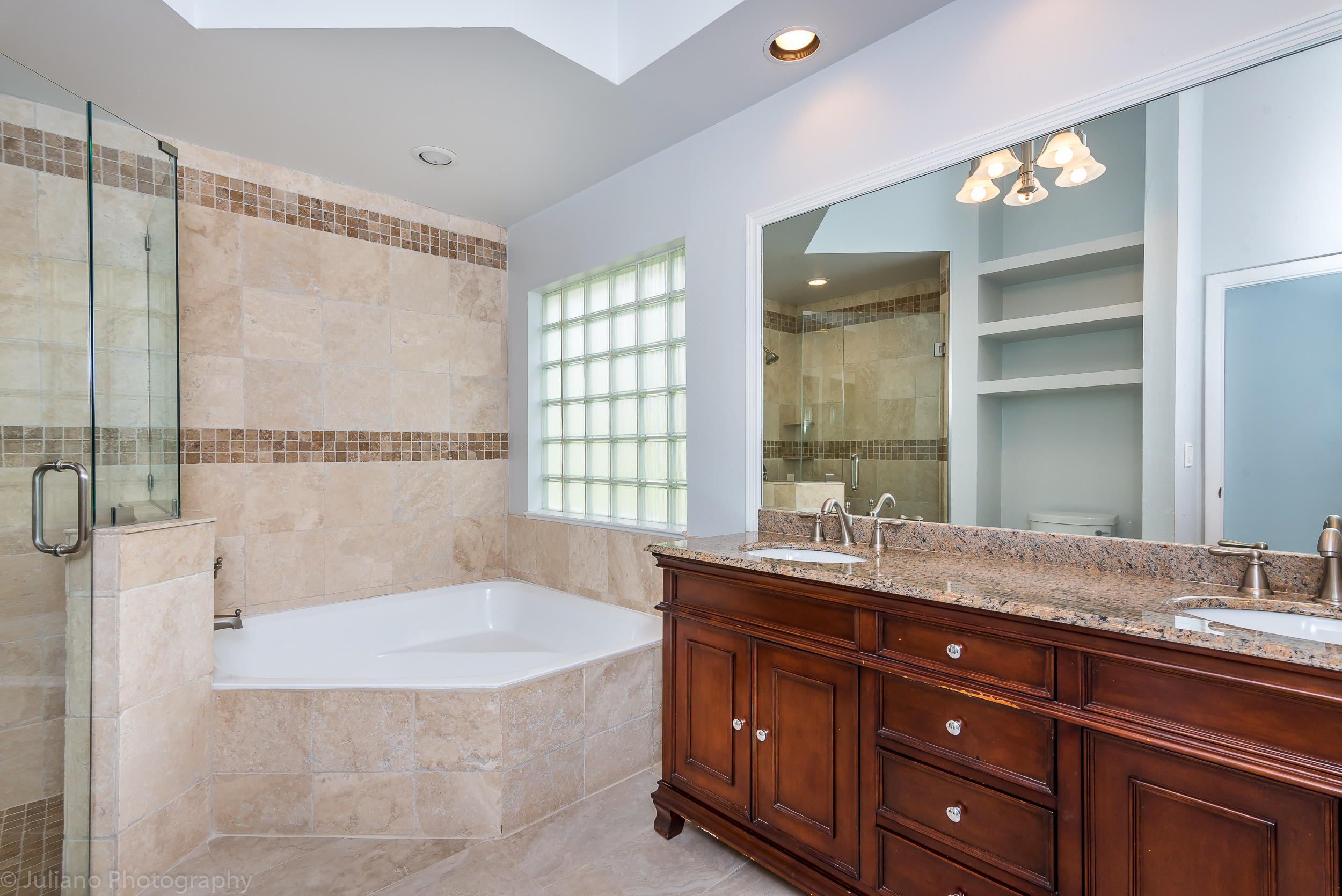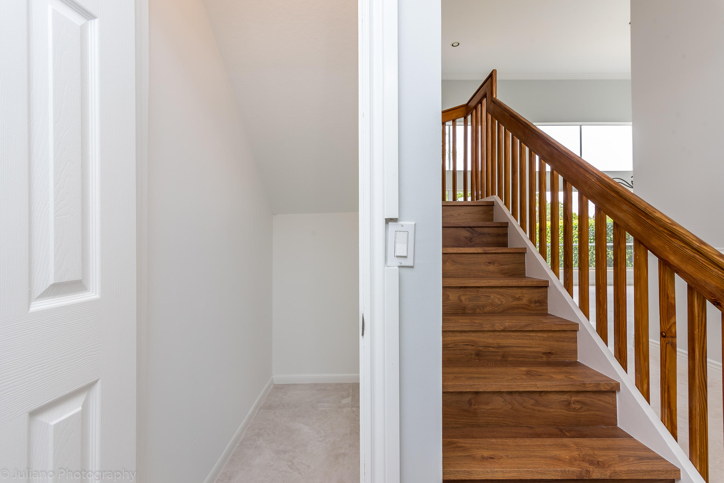 Gorgeous remodeled 4 bd/2.5 bath home in 24 hr gated community. New upgrades include 32'' porcelain tiles downstairs, new commercial grade Laminate upstairs. Freshly painted. All new stunning kitchen with white inlay cabinets, quartz counters, wine cooler, SS appliances & new LED lighting finish it off. MASTER BEDROOM DOWNSTAIRS with large walk in ''California'' closet. Master bath updated w/ marble, granite & new shower w/ full glass doors & wood cabinet with double sink. Both the upstairs bath & 1/2 bath were updated with porcelain tile & new cabinets. Vaulted ceilings with plenty of windows allows for beautiful light. New garage door opener with light sensors & key pads. Washer & Dryer 2 years old. Nothing to do, MOVE RIGHT IN! CLUB MEMBERSIP OPTIONAL. OVER $100,000 IN RECENT UPGRADES.