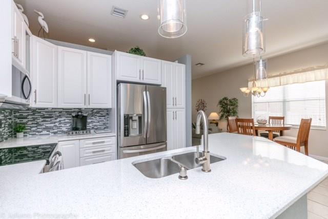 Pristine one story home located in Savanna!! Upgraded with elegant kitchen featuring stainless steal appliances, Cambria Quartz counter tops with glass slate and tile backsplash. Modern open floor plan with kitchen overlooking family/dinning room and adjacent to formal living room. Tiles throughout the main living area. Air conditioner and appliances all 2-3 years of age. Screened backyard patio and fenced; perfect for entertaining. Call today for an appointment to see this gem.
