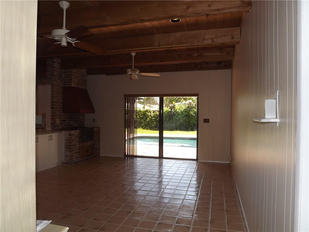 Lovely 5/3 on large fenced lot w/ fruit trees.Oversized pool has covered patio with granite bar & built in propane line. Two cabana baths, wood beamed ceilings, new bright white kitchen with stunning granite, island with storage, tiled backsplash, new stainless steel appliances. Freshly painted, new carpet in formal living/dining room. All bedrooms have new flooring. Accordion shutters! Upgraded electrical! Updated sprinkler system w/ new timer & well for sprinkler to save $.No HOA! Pavers front and back.