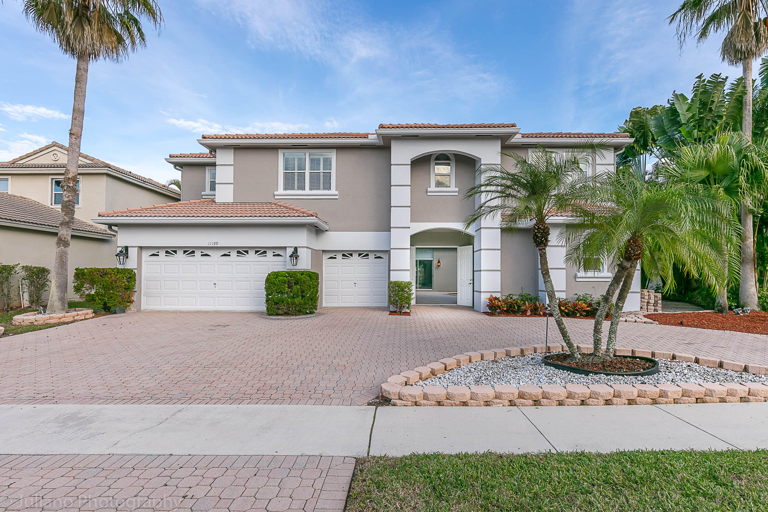 Rarely available and truly magnificent 2 story courtyard style home with a pool on a lake in the Shores of Boca Raton. Grand home with a circular driveway, stunning lake views, 3 car garage, pool, 3421 sq ft under air. Spacious first floor features an open tiled living room and dining room, views of the lake and the courtyard, master suite with 2 white built in closets, open kitchen with brand new appliances, half bath, a storage area under the remodeled staircase. Ideal 2nd floor features a large living/play room area, a split floor plan 2 bedrooms, 2 bathrooms, views of the courtyard. As you walk in the courtyard, the 4th bedroom and a full bathroom is separate from the main house and makes an excellent guest suite. Enjoy sunsets on the lake. Come and see this breath taking home today