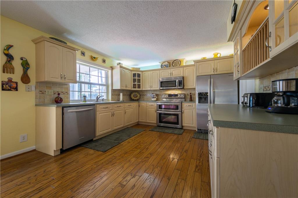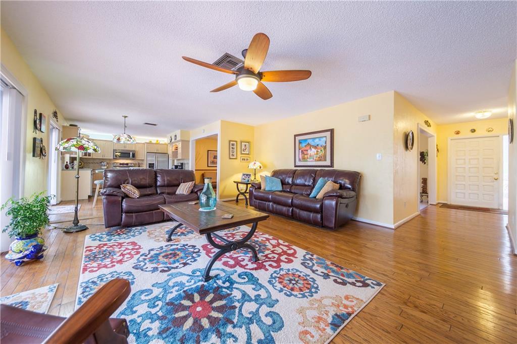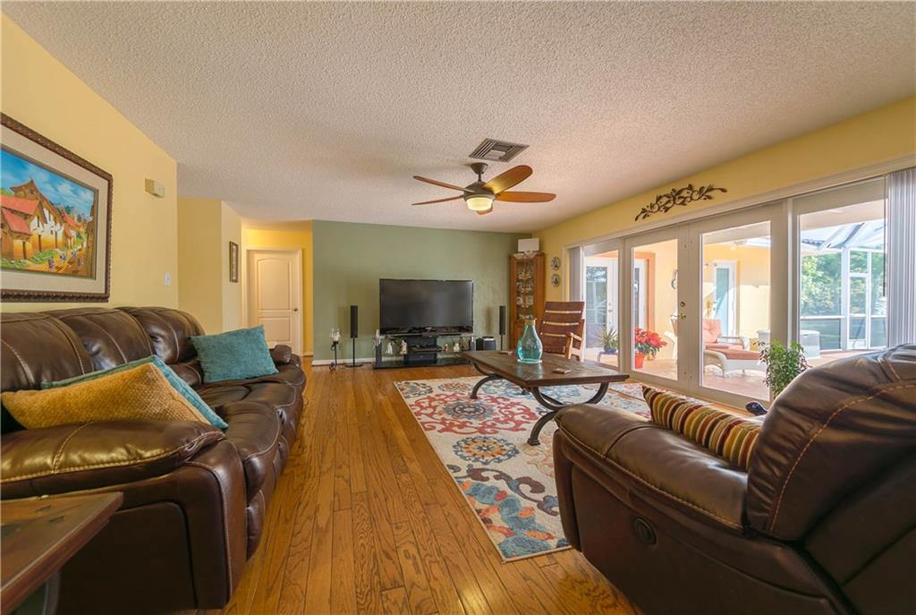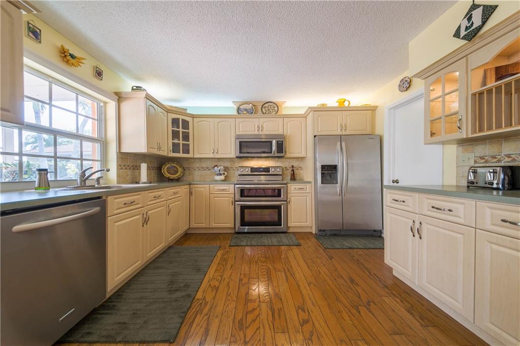 Beautiful & tranquil waterfront setting! Remodeled home with large screened pool & covered patio. Kitchen cabinets & countertops remodeled in 2003. Stainless appliances replaced in the last 2 1/2 years. A/C replaced in 2013. Bathroom 2 beautifully remodeled in 2012! Impact glass French doors in the back, impact glass windows on the sides of the home & impact garage door. Panel shutters for the front of home. Wood & Tile floors throughout home. All bedrooms include walk in closets! Lots of yard for play!