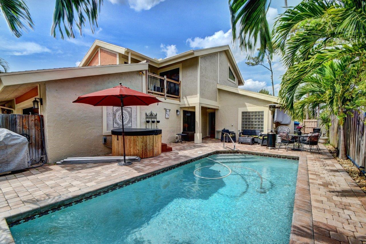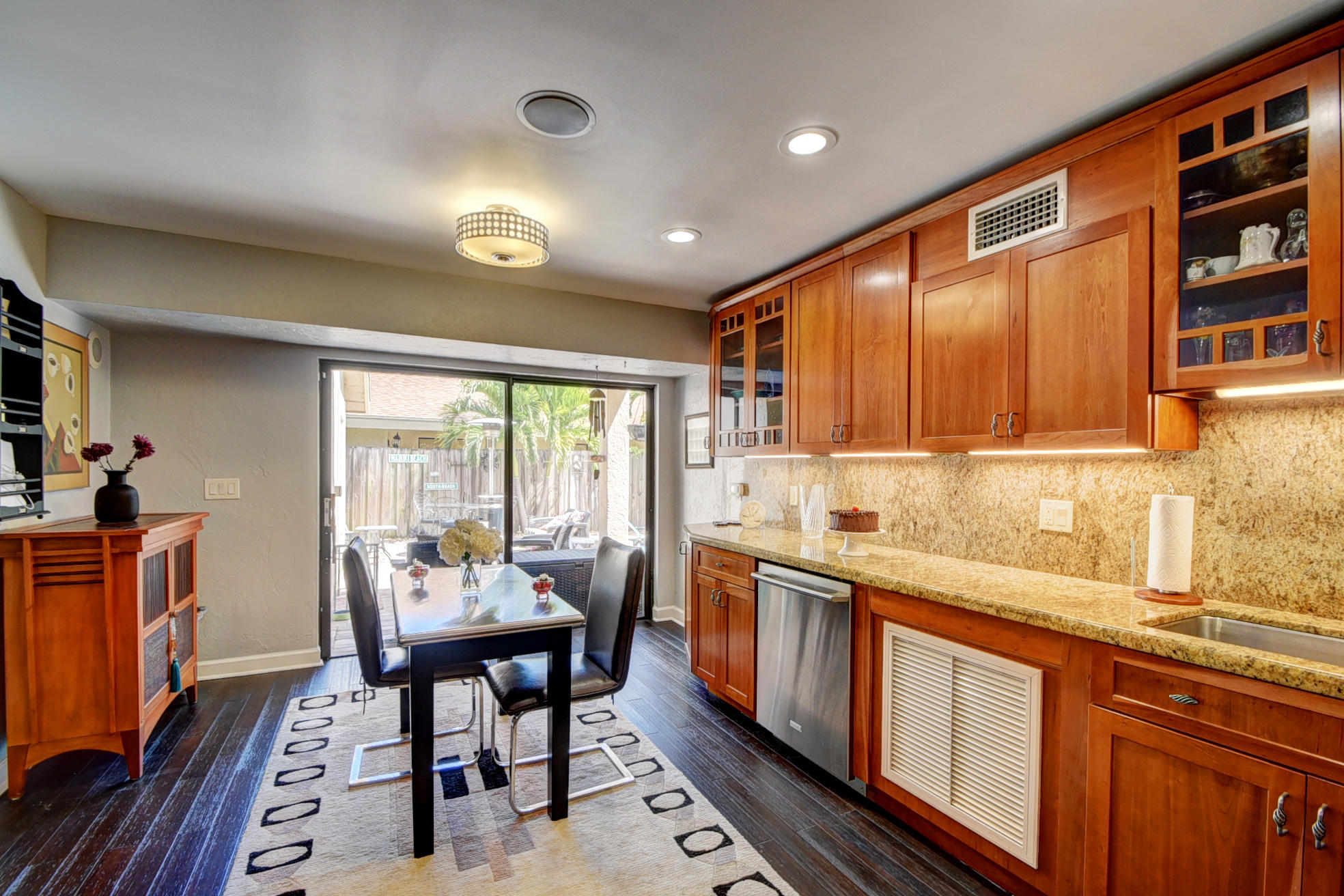 Charming 2 story townhome. Enter through your own gated private tropical oasis courtyard w/salt water pool with BRAND NEW Diamond Brite finish,tons of landscaping,fenced in backyard w/ BEAUTIFUL park just out your back gate. 3beds/2.5 baths/loft/updated kitchen granite counters/backsplash,new SS appl,custom cabinets,LED lighting,wood flooring & breakfast area. Fireplace in living room w/high ceilings,formal dining room, downstairs master suite w/bamboo flooring,custom builtin closet & incredible bathroom. Upstairs is 2 bedrooms/share balcony area/& loft. High end lighting through/all bathrooms very updated,new electrical panel, water heater & a/c. 2 Car garage w/paver driveway. Great location! Walk to A+schools & places of worship.Low HOA fee $210 includes ext paint/lawn care CLICK ''More'