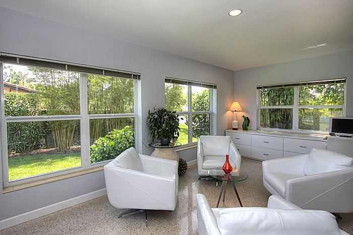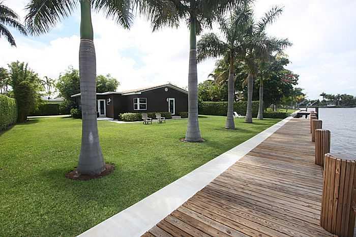 Hip mid-century modern residence east of US 1, situated directly on the widest part of the Middle River. Updated to perfection in 2011, this gorgeous, bright & airy turn-key home features cool terrazzo floors throughout, stunning modern kitchen, impact wi ndows/doors, and newer AC & roof. Tucked away on a quiet cul-de-sac, with a splendid park-like setting, this oversized lot features a long private driveway, 80' dock, spacious yard with room for a pool, and spectacular wide waterway views.