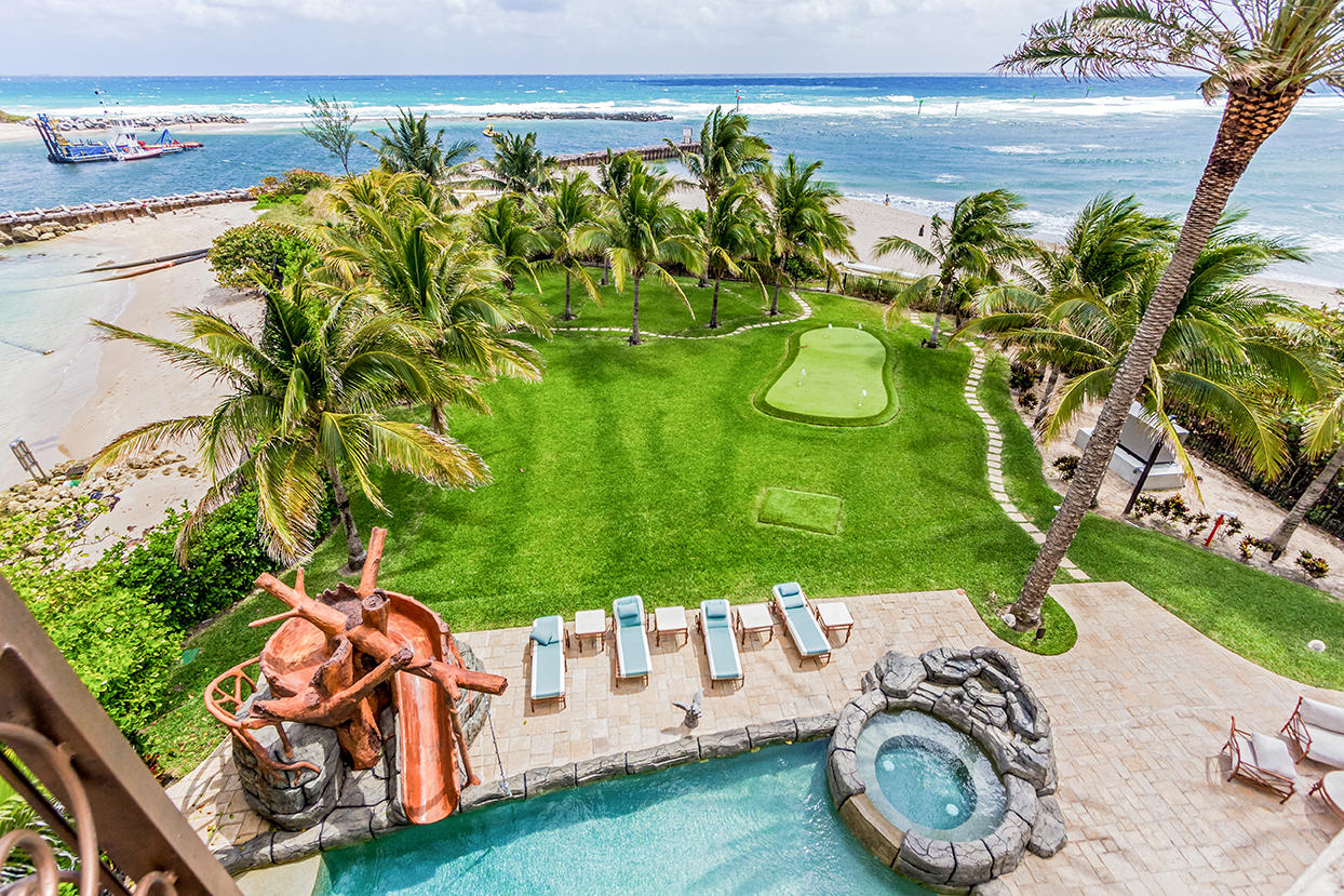 This modern masterpiece offers everything you could want in a dream home and more! Magnificent ocean, lighthouse, and inlet views from nearly every room in the house! The property is just under an acre smack dab on the beach! The backyard pool area rivals the best resorts and boasts a tree house slide and swing and a swim up bar! Practice your golf swing on the beach front putting green! Magnificent marble floors, custom designed paint and finishes, highest quality electronics, private elevator, impact glass windows and doors, state of the art gourmet kitchen, private home theater, gym, fireplace, stunning decor! There is no other home that compares with all this house has to offer right on the beach! Call today for a private tour. All dimensions approximate.