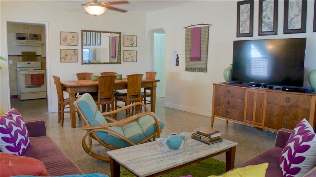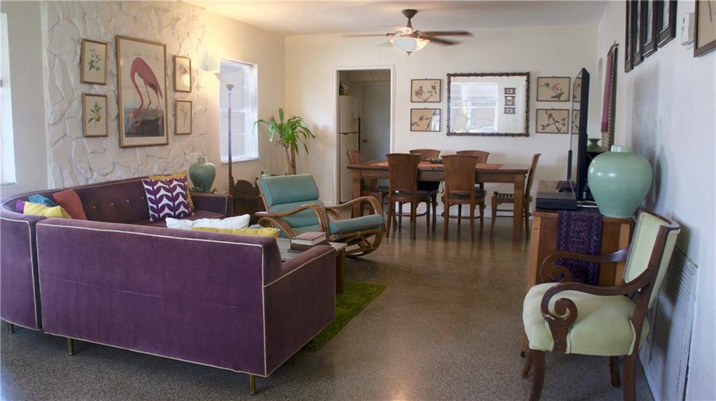 Back on the Market! The original terrazzo floors in this 3 bed/2 bath home are immaculate and truly capture the essence of this mid-century charmer. The home features a two car garage, a separate laundry area, natural gas cooking and generous closets and storage space. It also has a one bedroom efficiency attached to the rear of the home with it's own kitchen and bath. This space currently nets the seller $700 a month in rental income, but could also be a great set-up for a live-in nanny or relative.
