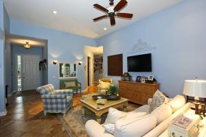 ONE OF A KIND LAKESIDE OAKMONT IN RIVERWALK, A 24 HOUR MANNED GATED 5 STAR RESORT STYLE COMMUNITY! FANTASTIC FENCED YARD WITH AN INVITING HOT TUB, PATIO & TROPICAL GARDEN PLANTINGS! 15-20 MINUTES TO EVERYTHING THAT IS GREAT ABOUT LIVING IN PALM BEACH COUNTY INCLUDING THE AIRPORT, PALM BEACH & THE OCEAN! This Sparkling Gem is set on a Landscaped Private Lakeside Lot! A Screened Tile Entry leads to the Tile Foyer that opens to the Great Room with 12 Ft. Ceilings, Extra Recessed Lighting, the Dining Area with Sliders to the Lanai as well as 18 Feet of Sliders that lead to the Screened 22 Foot Lanai with a Tile Floor with Diamond Accent Tiles, the Garden & the Lake & the Den with Bookcases, a Double Door Entry, Clerestory Windows & Faux Wood Floors! All of These Rooms have Plantation Shutters!