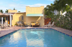 Lovely Spanish-style Historic Home with separate guest house and pool located one block from the Intracoastal Waterway. The main house offers 2 bedrooms and 1 bath with a guest house boasting 2 bedrooms and 1 bath as well. The main house has a newly renovated Dutch Mill kitchen with custom cabinetry and finishes, 5-burner commercial gas stove, and stainless steel appliances throughout. The separate guest house is separately metered as a potential income-producing rental property. The home also has a detached one-car garage, storage room, and a salt-water system heated pool.