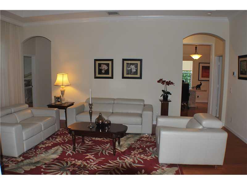 Welcome Home! One story 4 bedroom, 3.5 bathrooms home is love at first sight! Entertain on the spacious screened patio or relax in the custom designed heated pool/spa with waterfall & beach area.Very bright and open floor plan & foyer entrance with lots o f upgrades, Maple wood floors throughout the property, upgraded bathrooms with marble and much more! Upgraded gourmet kitchen with 42" wood cabinetry! Crown moldings throughout! Triple way split! This is a must see! Call today!