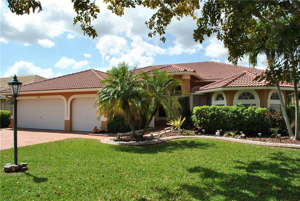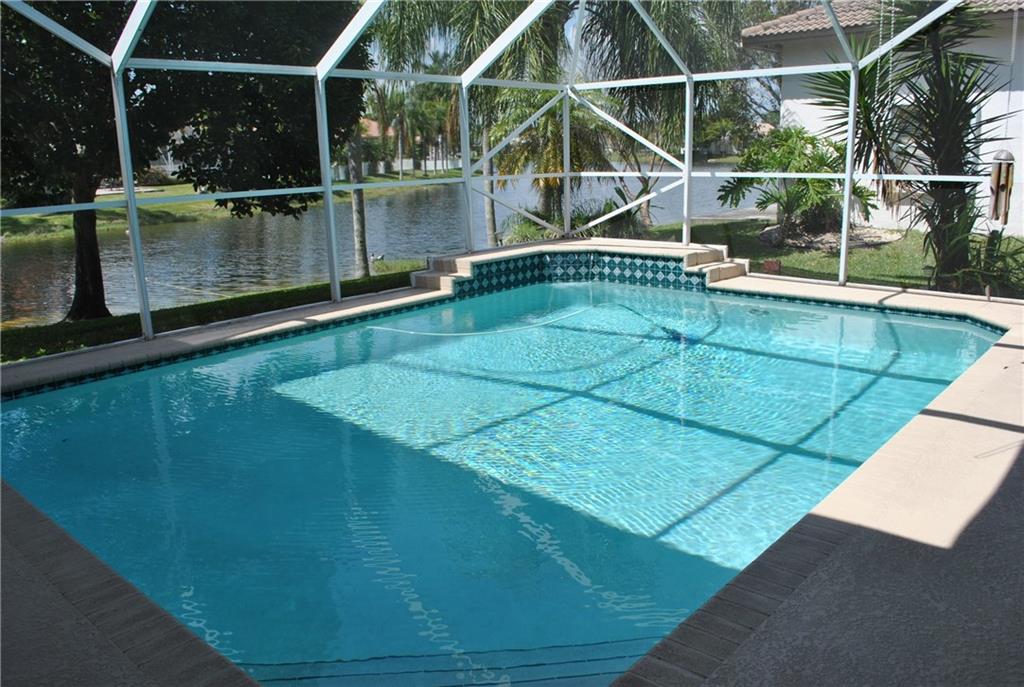 Great house 6 bedrooms 4 full bathrooms in Great community. Move in condition very well maintained. Triple split plan. Fabulous water front lot with breath taking sunset. Freshly painted interior and exterior. Granite top kitchen counters, Accordion shutters, screened in pool. Recently installed 3 car garage hurricane proof doors. 2 year old A/C unit & lots more. Newer carpets in all bedrooms, remodeled bath room. Water softener for whole house & water Osmoso under Kitchen sink. Furniture is optional.