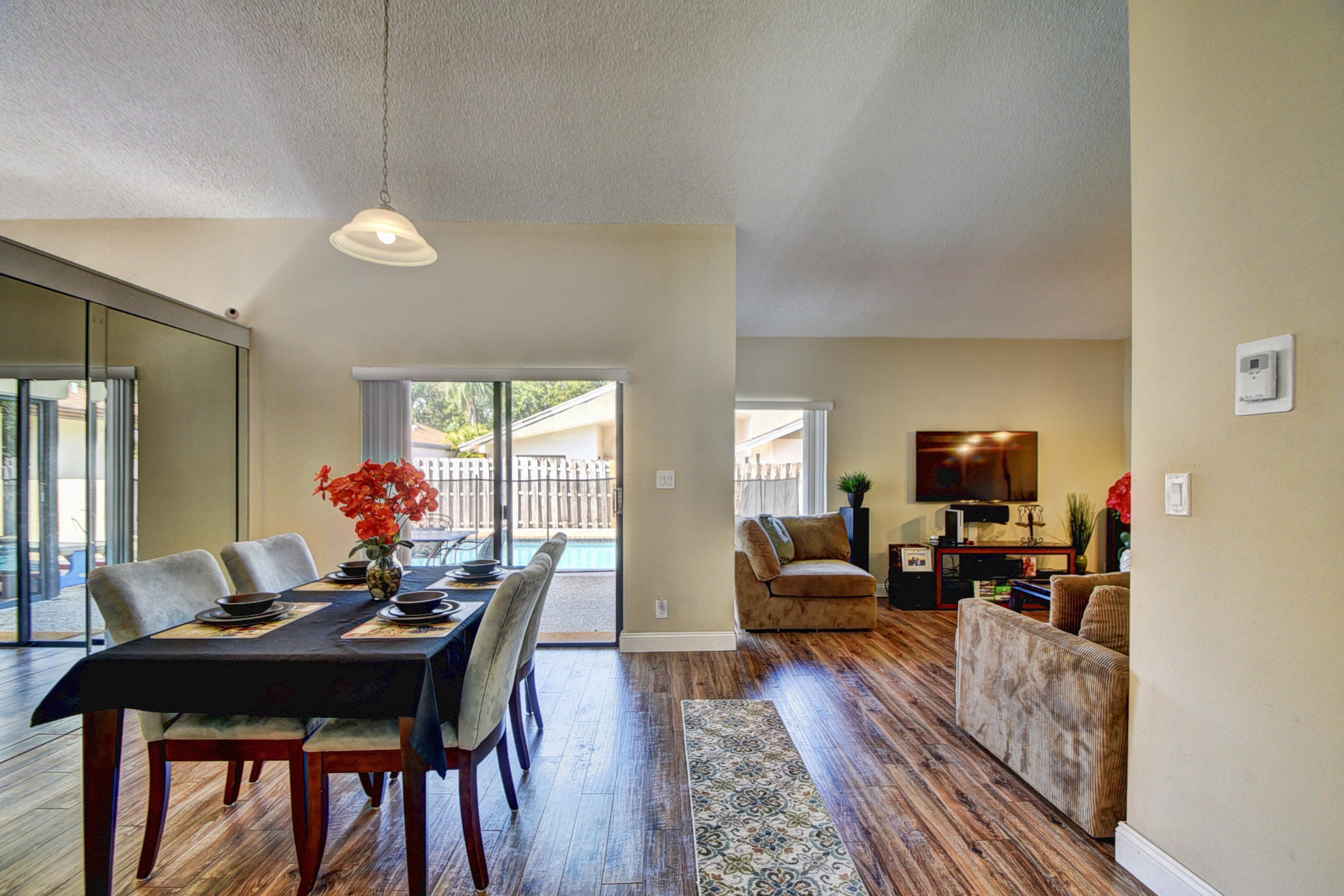 3 Bedroom/2 Bath/Pool home located on a corner lot w/private cul-de-sac just for this home. No homes in front/Entire cul-de-sac just for this home! Vaulted ceilings, open & split floor plan that is bright & airy. Brand new kitchen includes new SS appliances/granite counters/wood cabinets/eat in area+snack bar/out door side area off kitchen. Home freshly painted, new a/c, & living area has new laminate wood flooring. Backyard is private w/large pool, new child safety fence, & new pool equipment. Inside laundry room w/new washer/dryer that can be operated from your phone. Roof 2006. 2 car garage. Low HOA fee $73 month includes parks w/baseball, basketball, tennis,playground area,tot lot,nature trails,24 hour roving security,+ MORE! Great schools! Pet friendly. All ages.