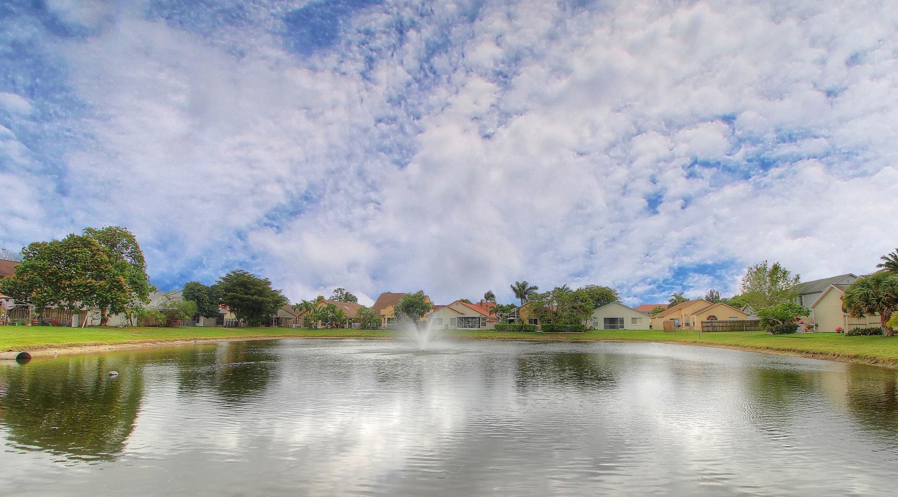 Soaring ceilings welcome you home in this light and bright 3/2.1/2 home with amazing views of the screened pool, lake, and fountain. Large open kitchen has wood cabinets, stainless appliances, and granite counters. The main living areas are tiled, and bedrooms and stairs have laminate flooring. Downstairs bathroom was remodeled in 2015. Crown moldings throughout plus architectural details and niches put the finishing touch on this amazing home. The master bedroom is located downstairs and the other two bedrooms are upstairs. The garage has been converted into a small office plus bedroom which can all be easily converted back to a garage. Enjoy sitting by the recently (2015) resurfaced pool and enjoy the fountain on the lake complete with colored lights.