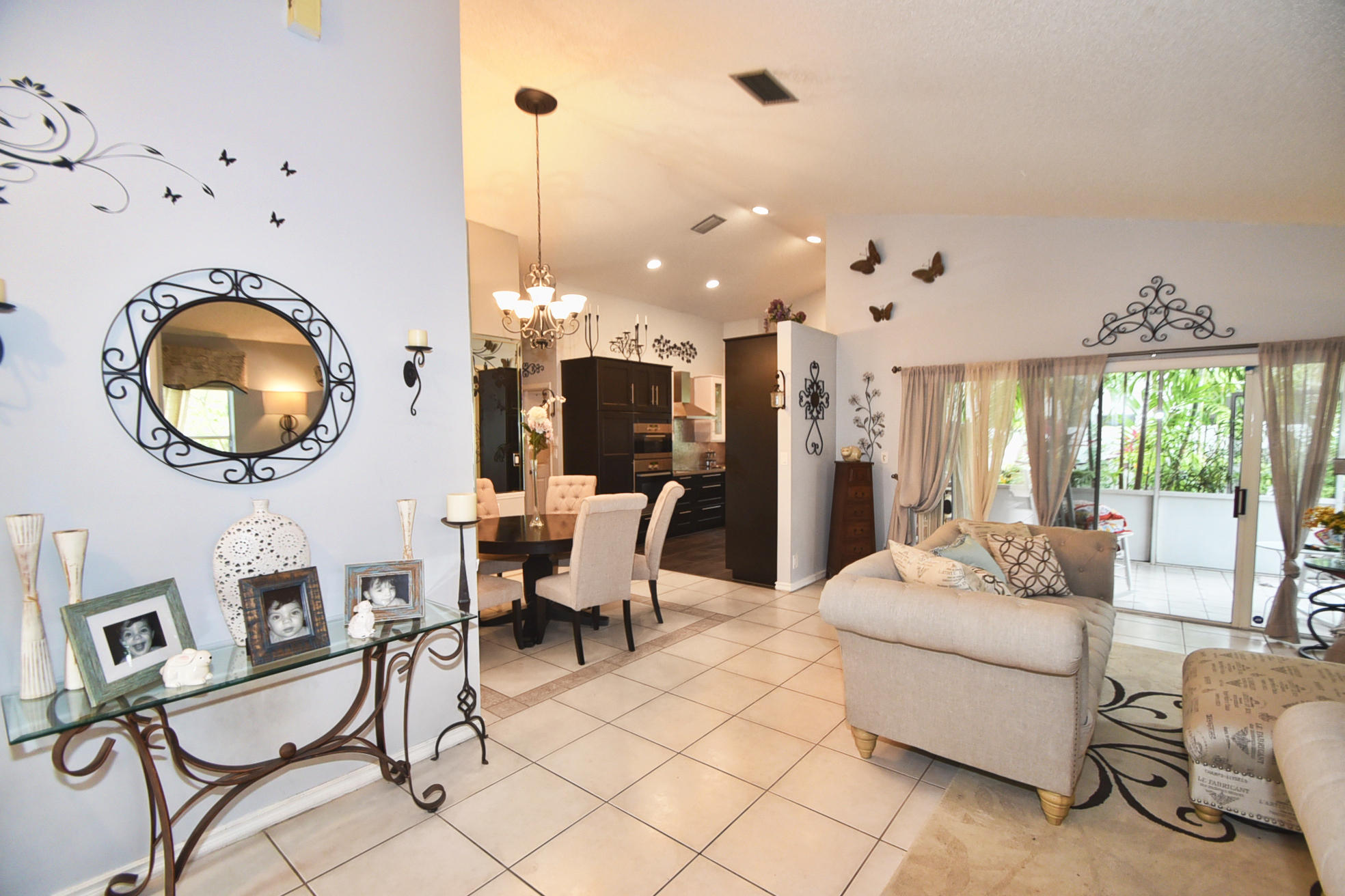 Welcome to HGTV Style!Redesigned and re imagined this huge stylish kitchen has tons of storage and convenient pull outs,lots of counter space, Stainless appliance, glass tile backsplash, granite counters,Farm Sink,12 foot volume ceilings. Move in ready! #LOVEIT#UNIQUE##STAINLESS#VOLUMECEILINGS#SPACIOUS#JUSTWHATIWASLOOKINGFOR!!!Ceramic tile in all living areas with wood laminate in bedrooms lets you enjoy *easy maintenance. No Carpets Here! Updated bathrooms with shaker doors and bead board walls! Large screened in Patio, Fully fenced yard with lots of lush trees plus a Lemon tree and a Mango tree too! New roof and fence 2013 AC 2009 meticulously maintained. True Doll House!Sidewalks thru-out community with Olympic pool plus kiddie pool and tot lot too. Basketballl, raquet ball,tenn