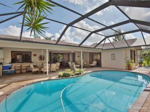 Beautiful 4 bedroom home in the very desirable Boca Chase neighborhood. Fully renovated and extremely well kept home on a large .36 acre lot. The kitchen has been completely upgraded with granite countertops, new stainless steel appliances and wood cabinetry. The bathrooms have both been renovated and are exquisite. Beautiful wood flooring throughout the living areas. The master bedroom features a private office and entrance to the patio and pool area. Accordian shutters and a back up generator. Stunning outdoor patio area features an outdoor kitchen, wet bar, and fully screen lanai. The pool area is perfect for entertaining it has a large pool and separate spa area for privacy. Fantastic community with very low hoa and some of the finest schools in the west Boca area