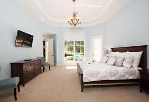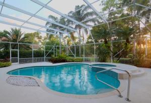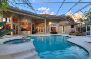 Impeccable custom home located in the exclusive Flagler Estates section of Breakers West. Gorgeous views overlooking the 4th fairway of the Rees Jones course. Situated on over 1/2 acre with lush tropical landscaping and an abundance of privacy. Enjoy the outdoor living area with expansive entertainment areas including a screened-in pool/spa and covered lanais. Newly designed chefs kitchen with plenty of storage and top of the line appliances including Wolf, Subzero and Bosch. Dual master baths perfectly designed with exquisite marble and granite detail, perfect for relaxation. Additional fine features include wet bar with refrigerated drawers and wine storage, built-ins throughout the home, 2 car garage, +