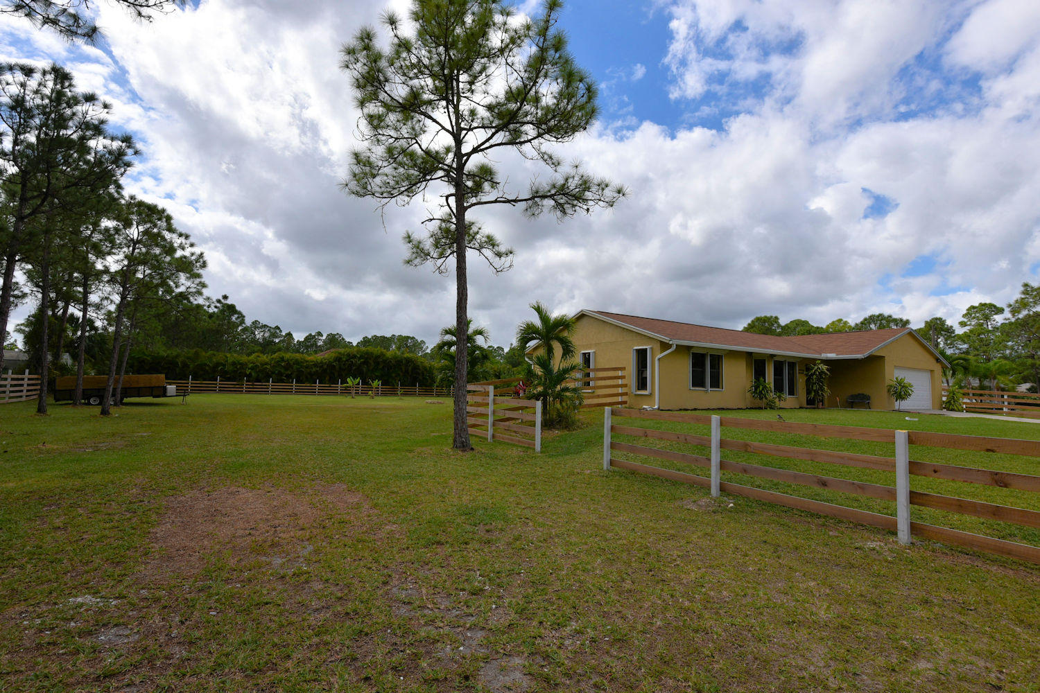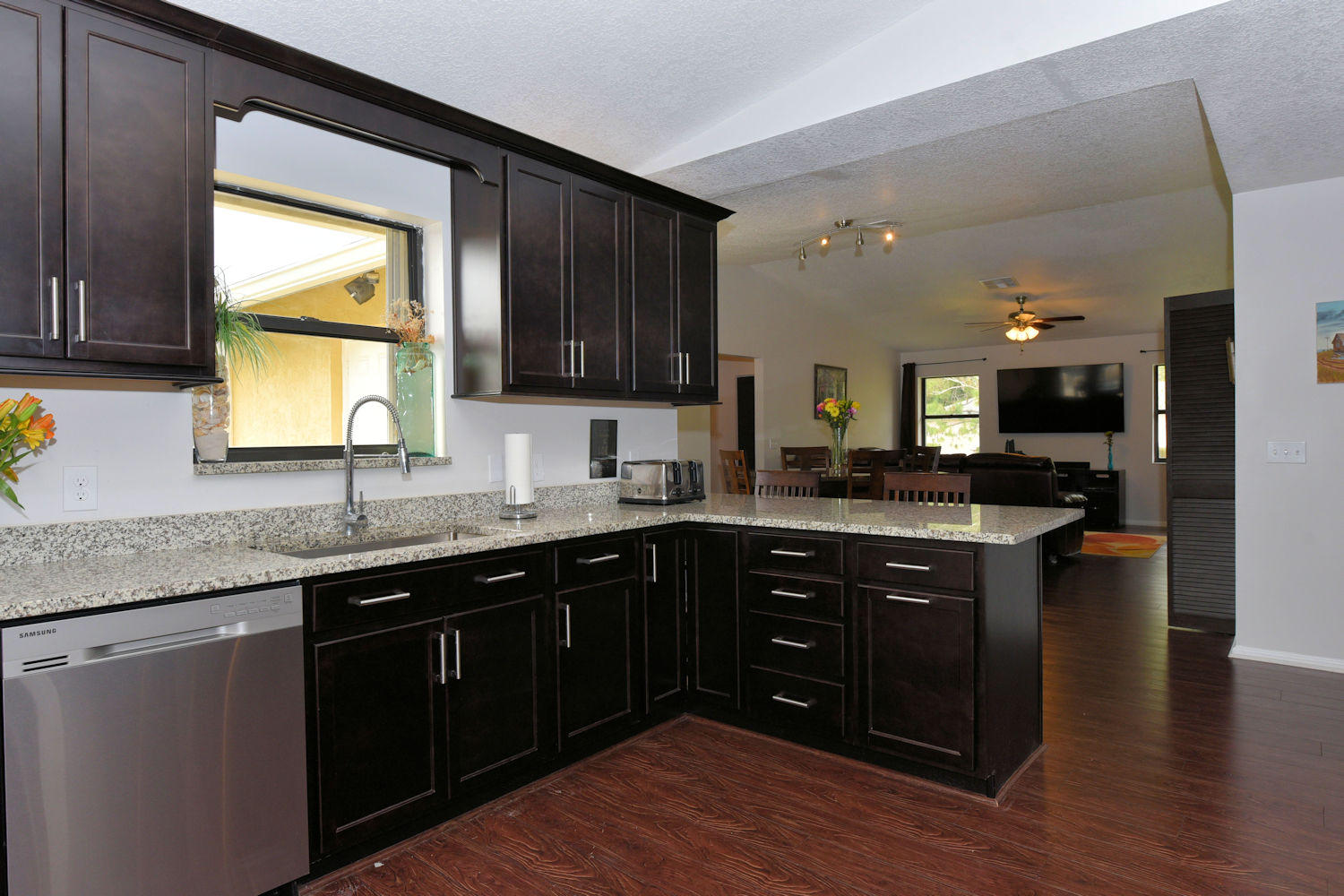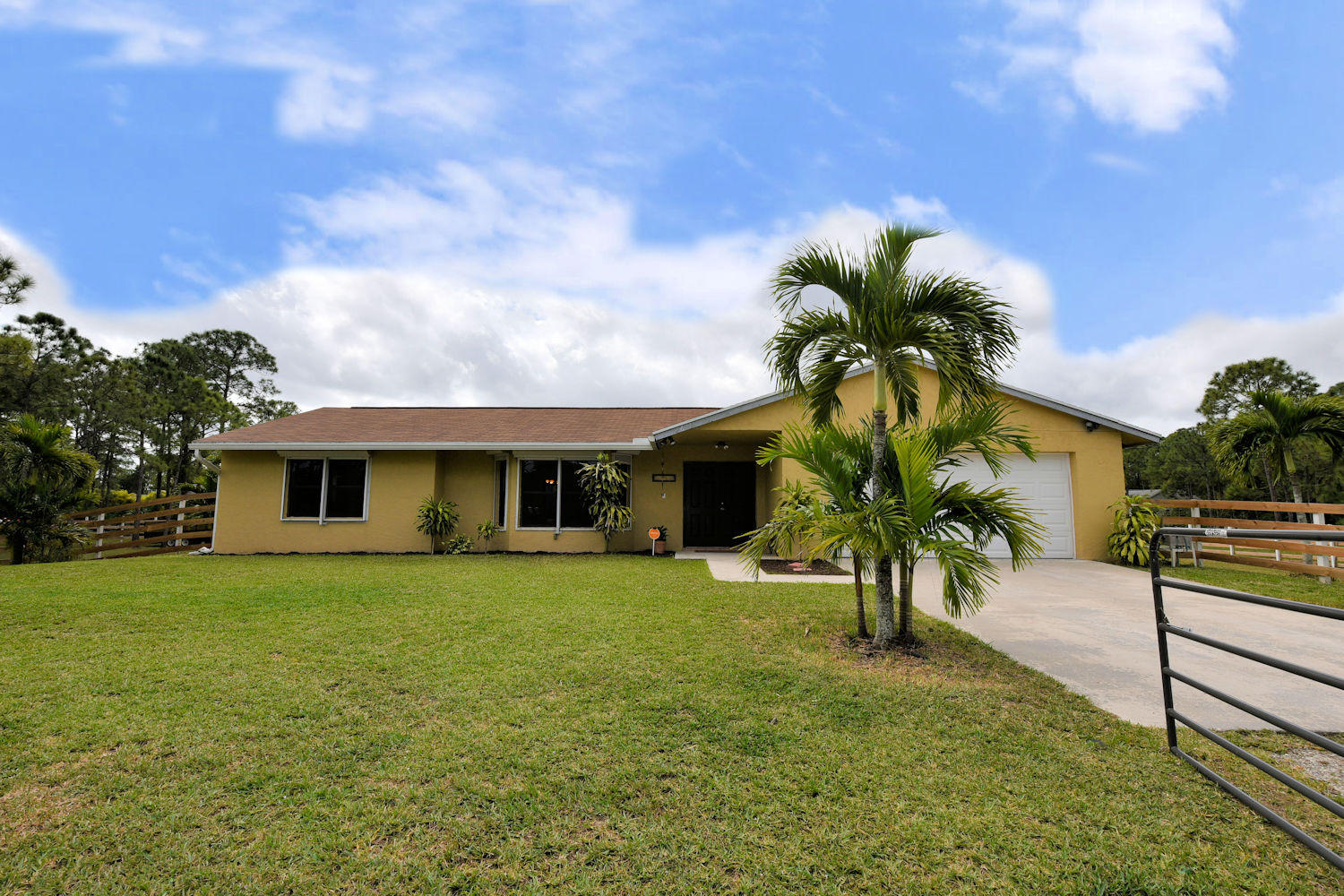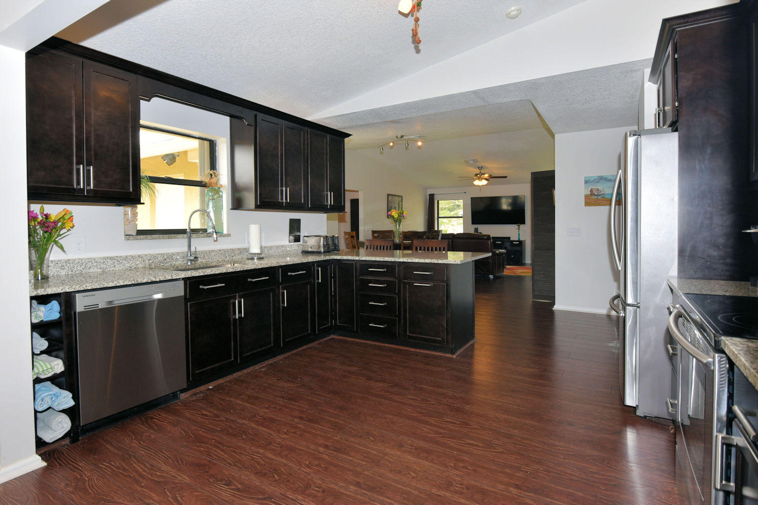 Wow! Spacious 3/2/2 on an a quiet street with completely fenced yard on over an acre. This wonderful home has a completely new kitchen with all new stainless steel appliances, granite countertop, built in pantry, & built in organizers. New wood-laminate flooring throughout the living area, freshly painted interior and a new washer and dryer. This lovely home has high ceilings, large open patio and a split bedroom plan with walk in closets and french doors to the patio in the dining room and family room. This home has been thoughtfully updated within the last two years. Over-sized two car garage with extra storage (25'x21'). There are two large gates for entry to this lot with two culverts located on the east and west sides of the lot. Come see this home today!