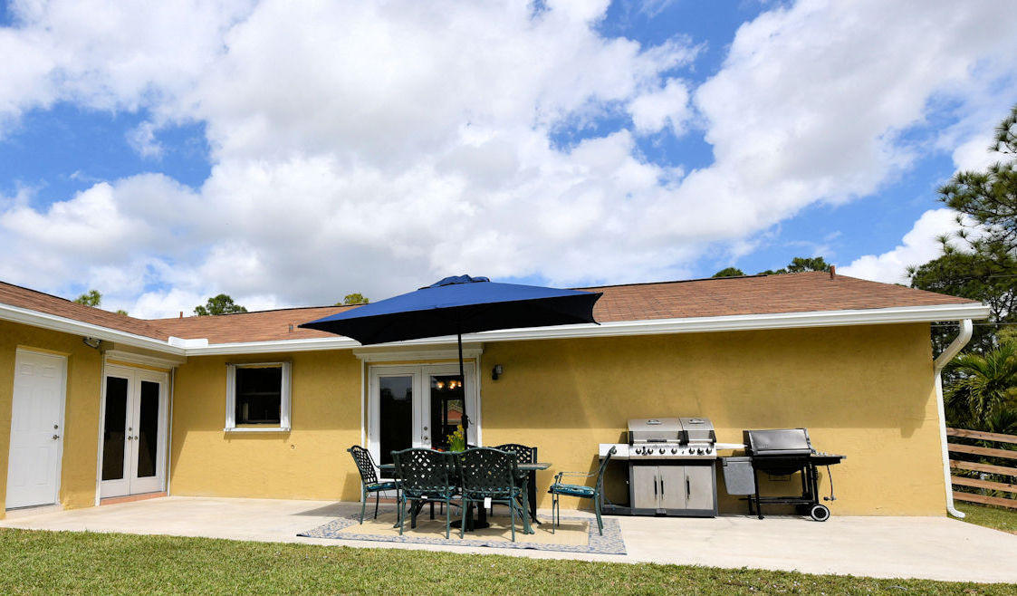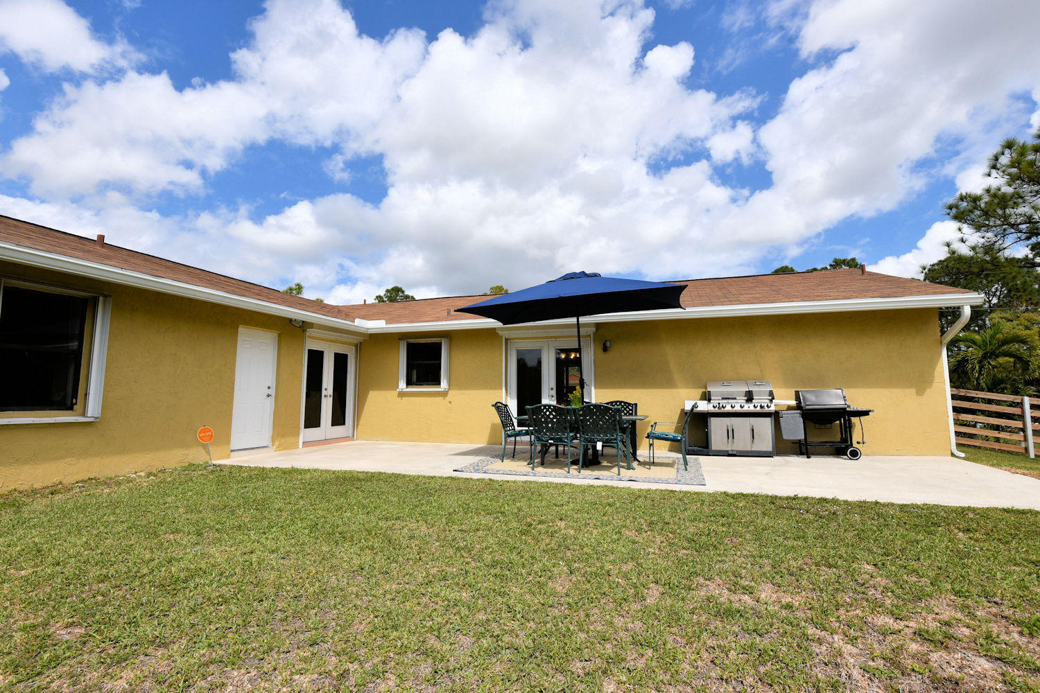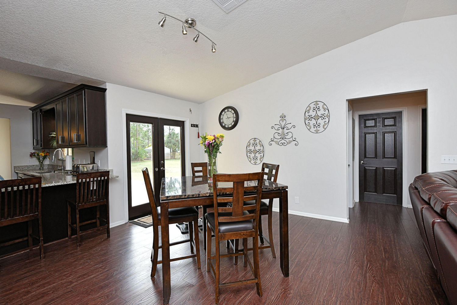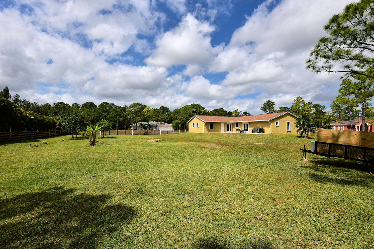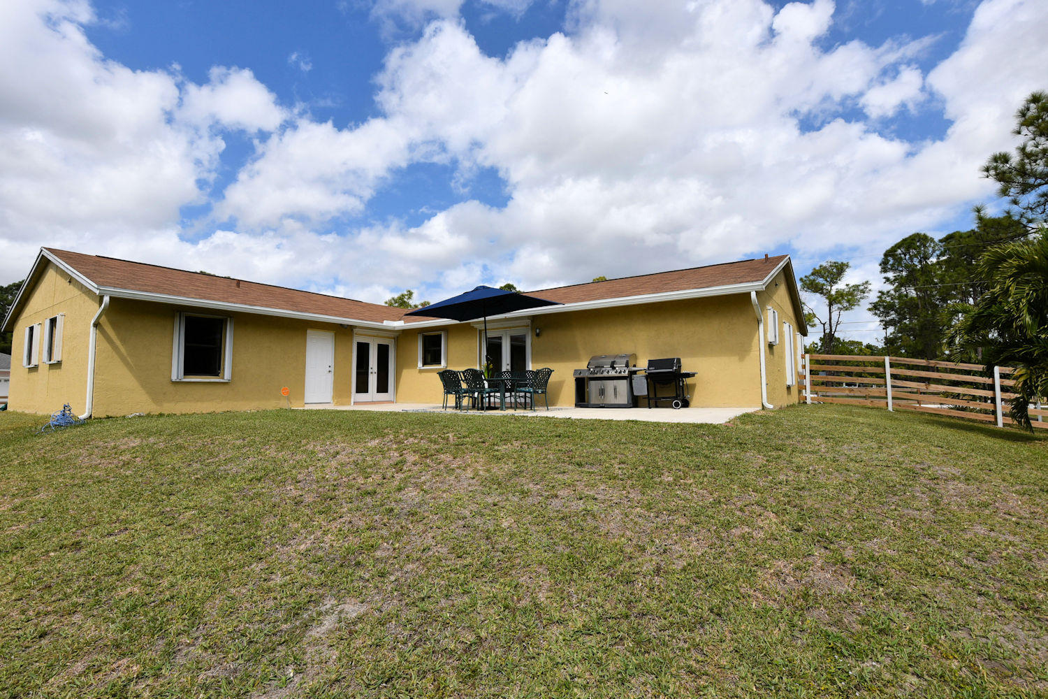 Wow! Spacious 3/2/2 on an a quiet street with completely fenced yard on over an acre. This wonderful home has a completely new kitchen with all new stainless steel appliances, granite countertop, built in pantry, & built in organizers. New wood-laminate flooring throughout the living area, freshly painted interior and a new washer and dryer. This lovely home has high ceilings, large open patio and a split bedroom plan with walk in closets and french doors to the patio in the dining room and family room. This home has been thoughtfully updated within the last two years. Over-sized two car garage with extra storage (25'x21'). There are two large gates for entry to this lot with two culverts located on the east and west sides of the lot. Come see this home today!