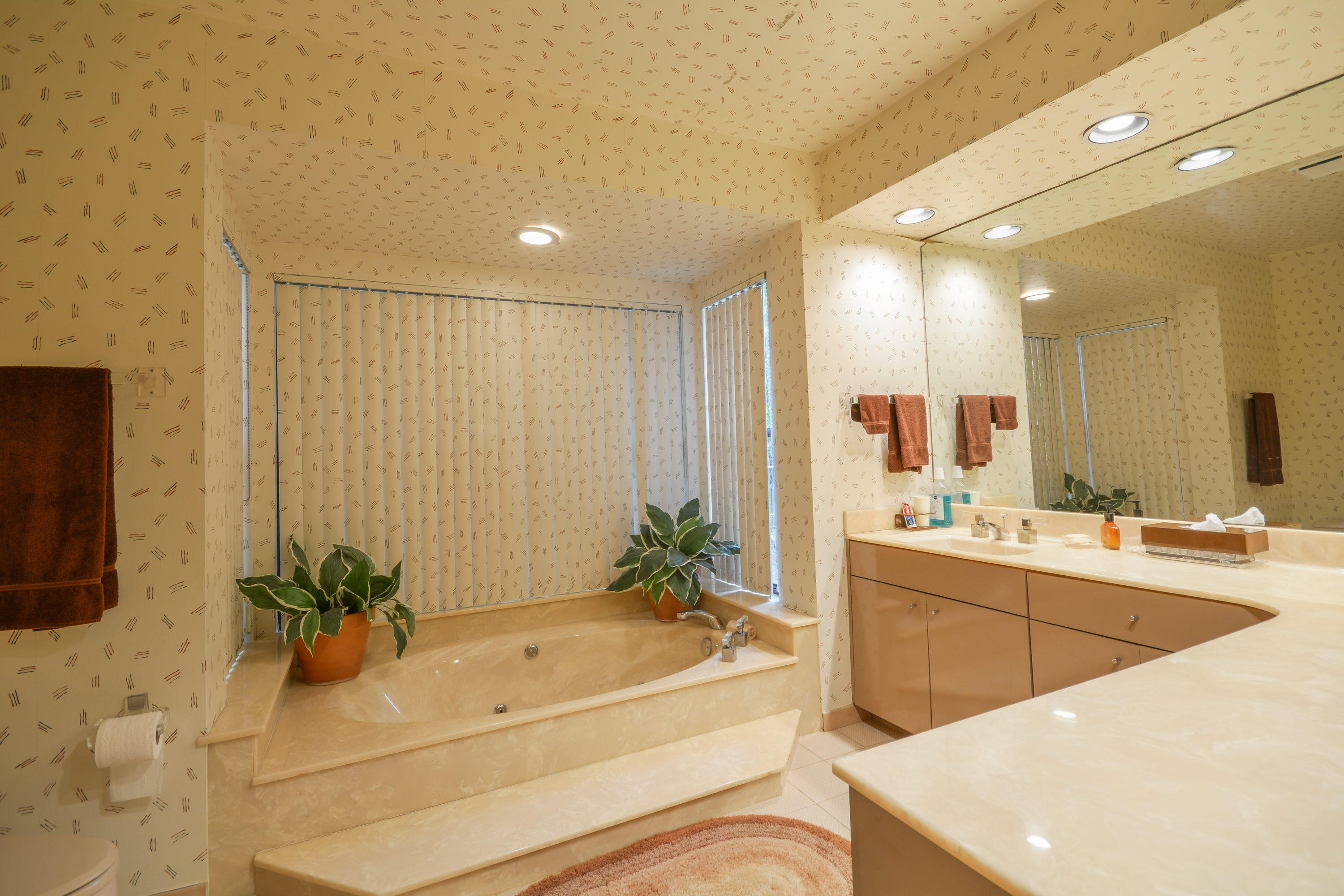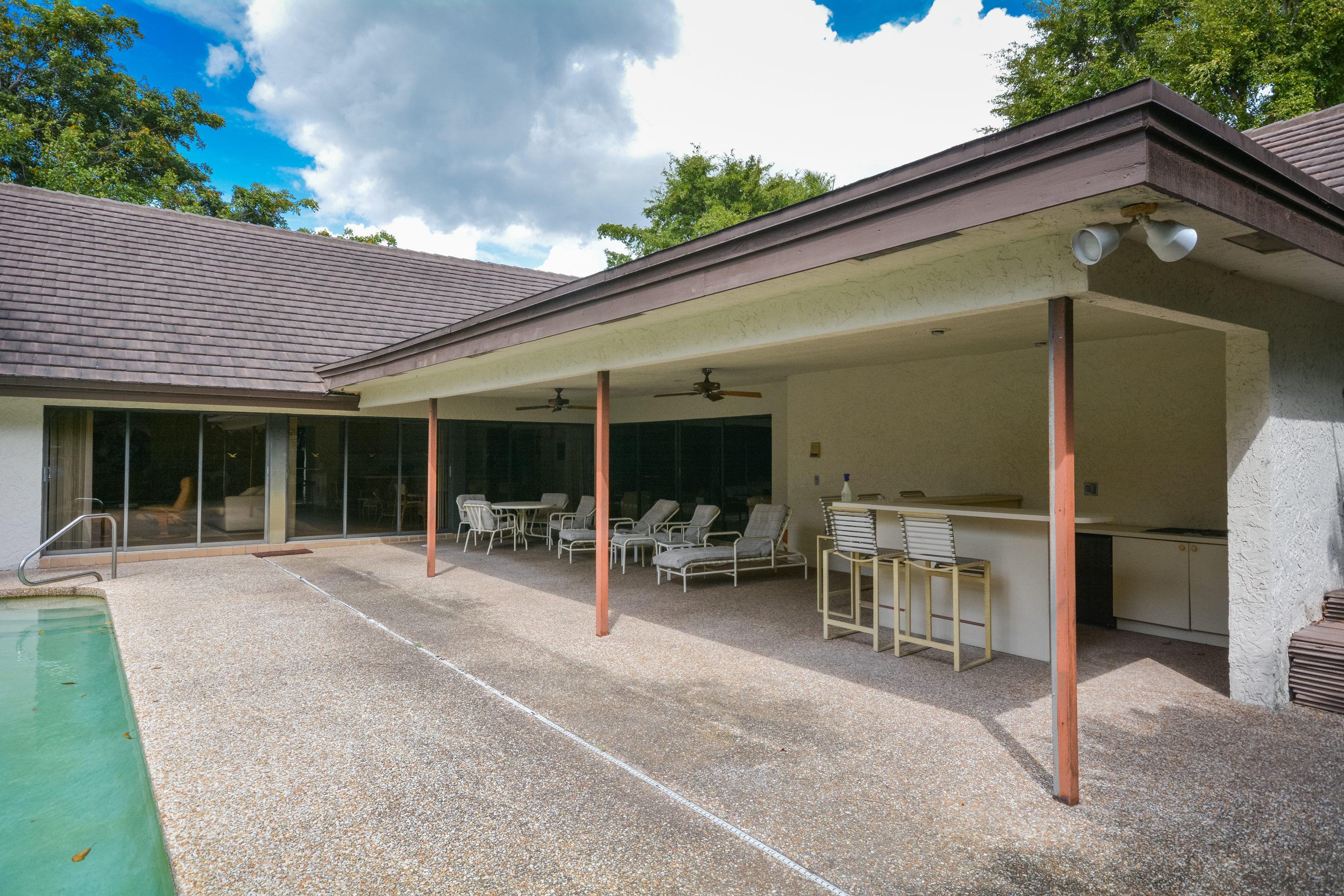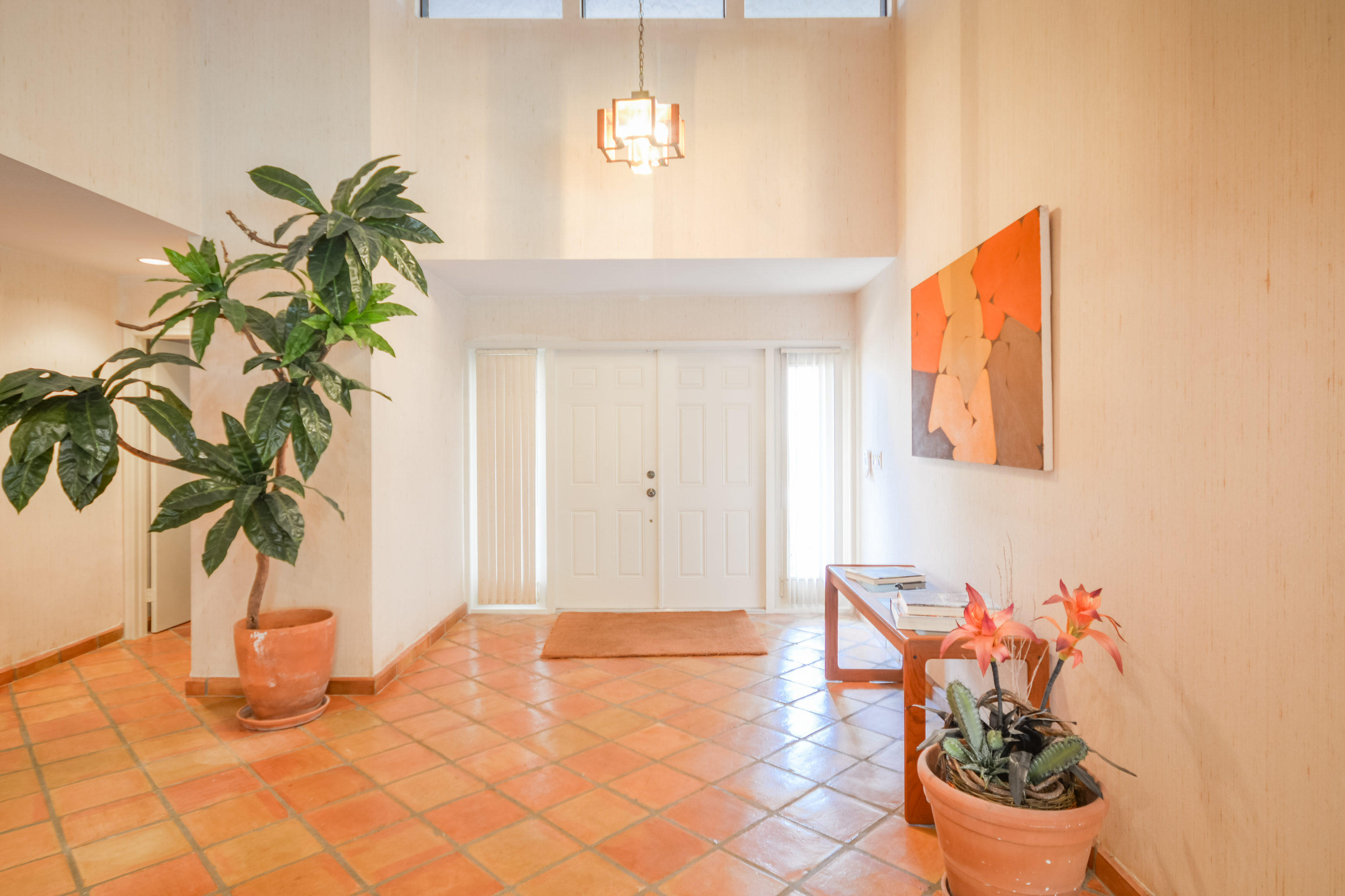 This 4-bedroom/3.5-bath split-plan, one-story home pool home is located in the gated St. Andrews Country Club. This home is situated on 1/3 acre of a lushly landscaped, private yard bordering the golf course, all on one level with no stairs to climb. A spacious open floor plan is highlighted with authentic Spanish tile laid on the diagonal, cathedral ceilings with recessed lighting and clerestory windows, plus expansive views from each room overlooking the oversized pool and outdoor patio space, complete with a sit down bar area which is great for entertaining. An office is conveniently situated off the living room, featuring a bay window off the living room and plenty of private space.