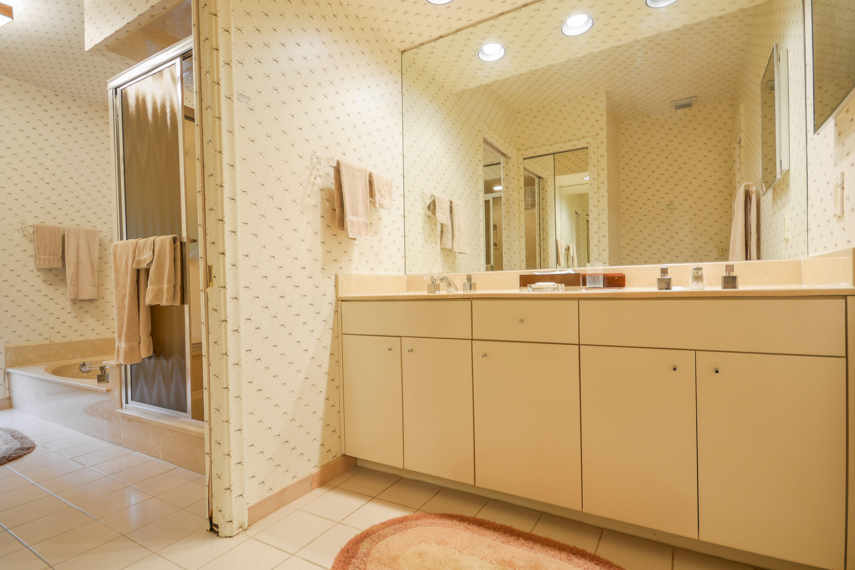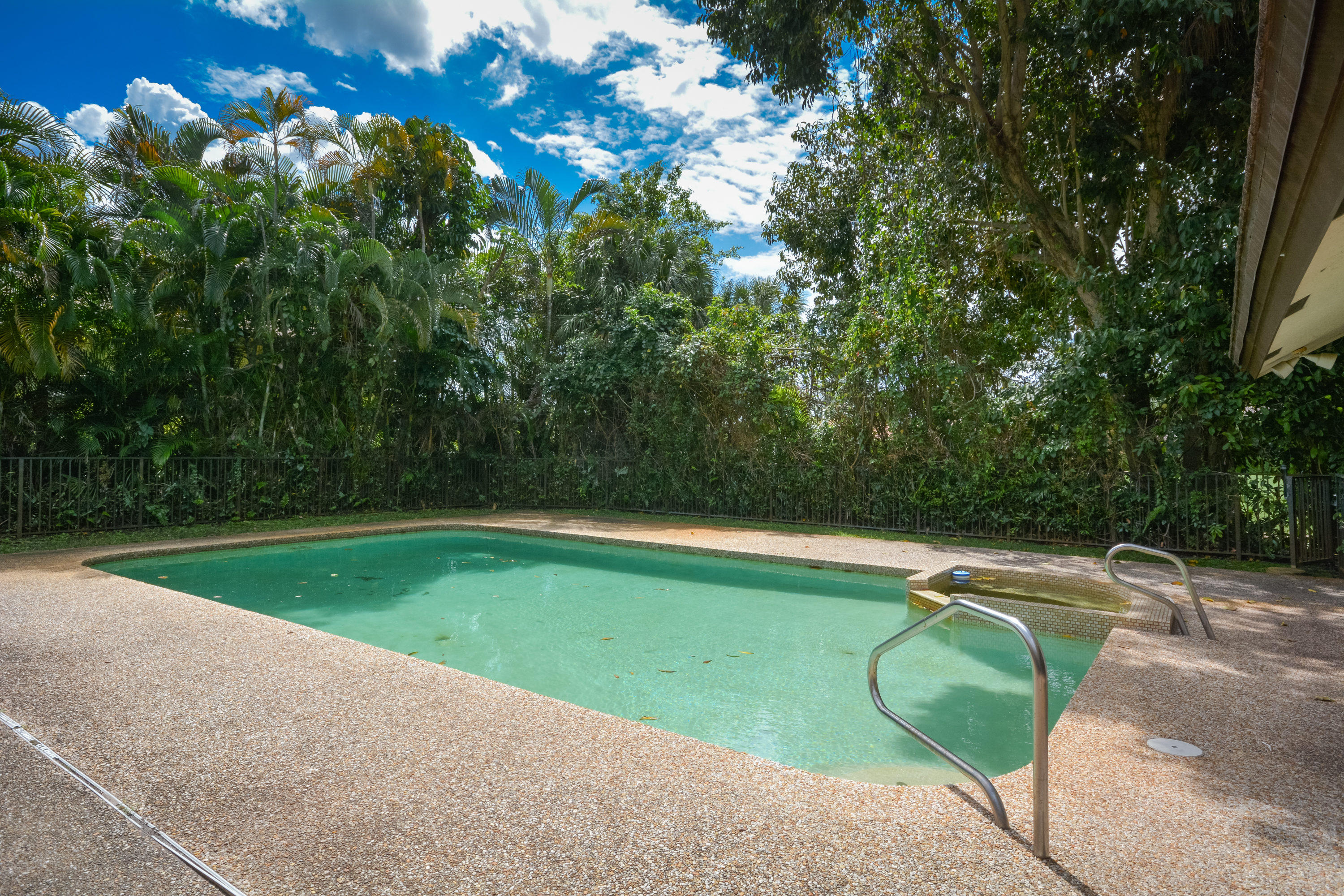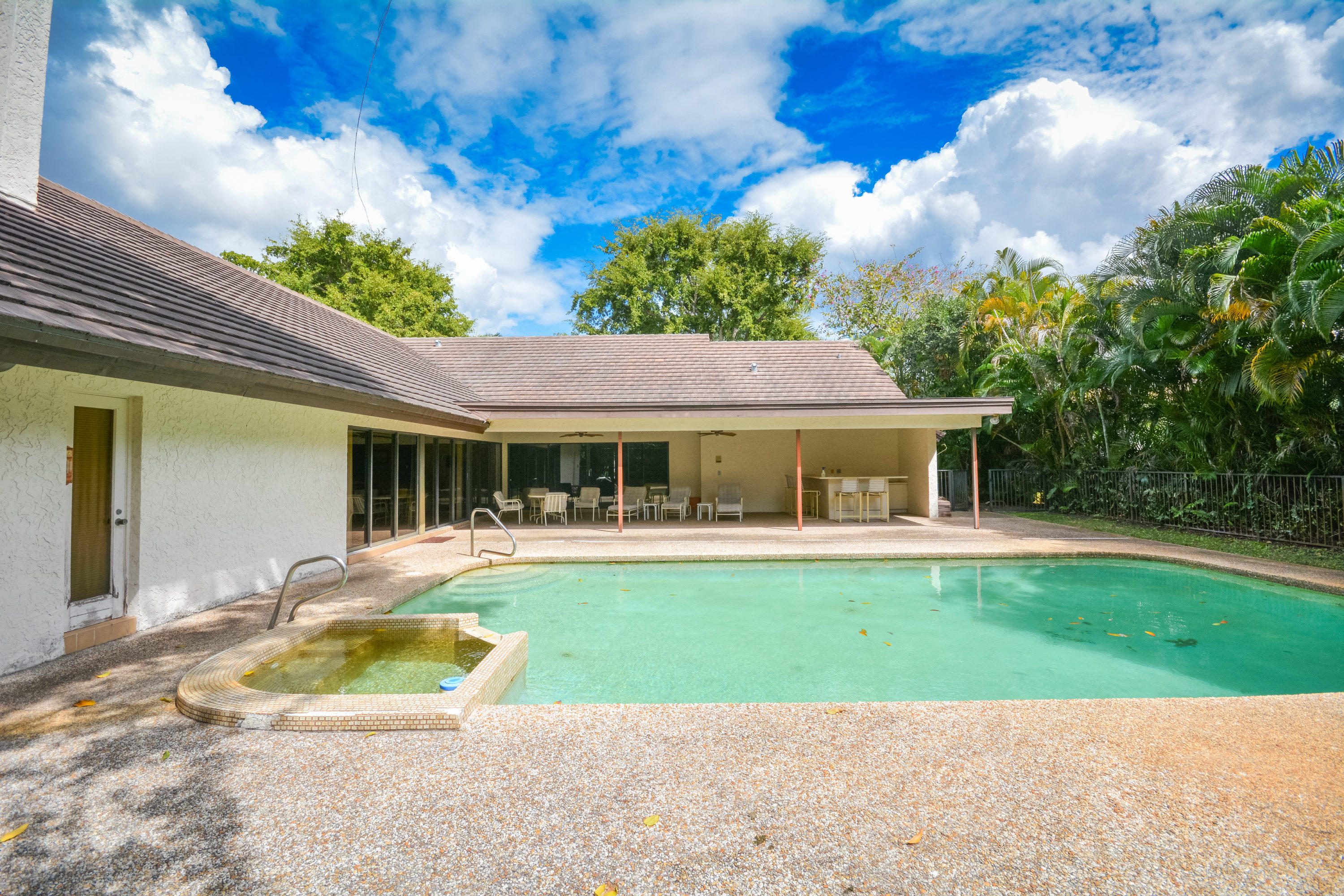 This 4-bedroom/3.5-bath split-plan, one-story home pool home is located in the gated St. Andrews Country Club. This home is situated on 1/3 acre of a lushly landscaped, private yard bordering the golf course, all on one level with no stairs to climb. A spacious open floor plan is highlighted with authentic Spanish tile laid on the diagonal, cathedral ceilings with recessed lighting and clerestory windows, plus expansive views from each room overlooking the oversized pool and outdoor patio space, complete with a sit down bar area which is great for entertaining. An office is conveniently situated off the living room, featuring a bay window off the living room and plenty of private space.