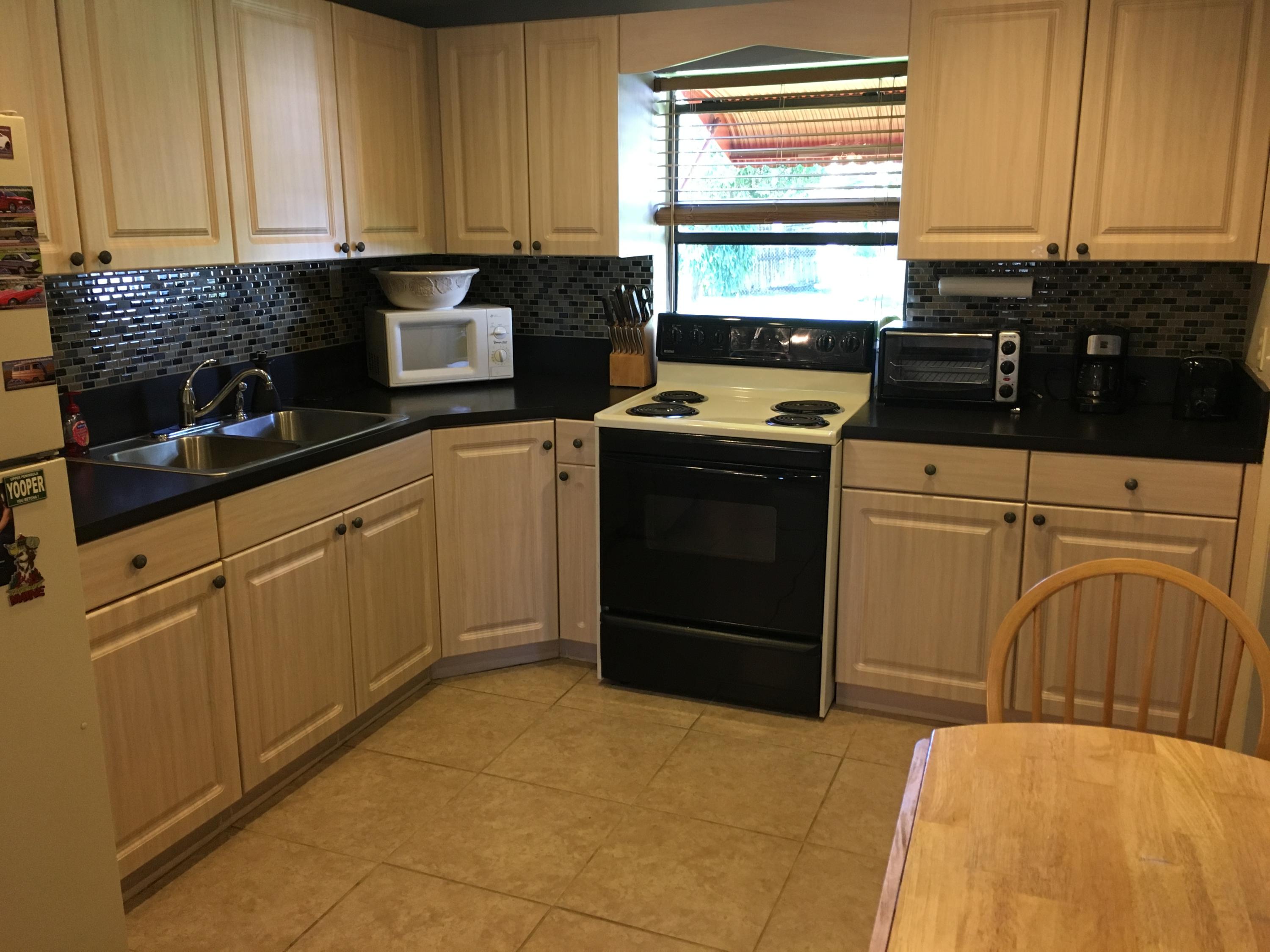 Pride of ownership and very well maintained 2 bedroom 1 bath CBS construction starter home in great central location. Great open floor plan and beautifully redone kitchen, huge backyard completely fenced for animals, work shed on property, screen enclosed carport, utility room with washer/dryer area under air and very clean and move in ready. Nice landscaping and nice green grassy yard with great curb appeal.