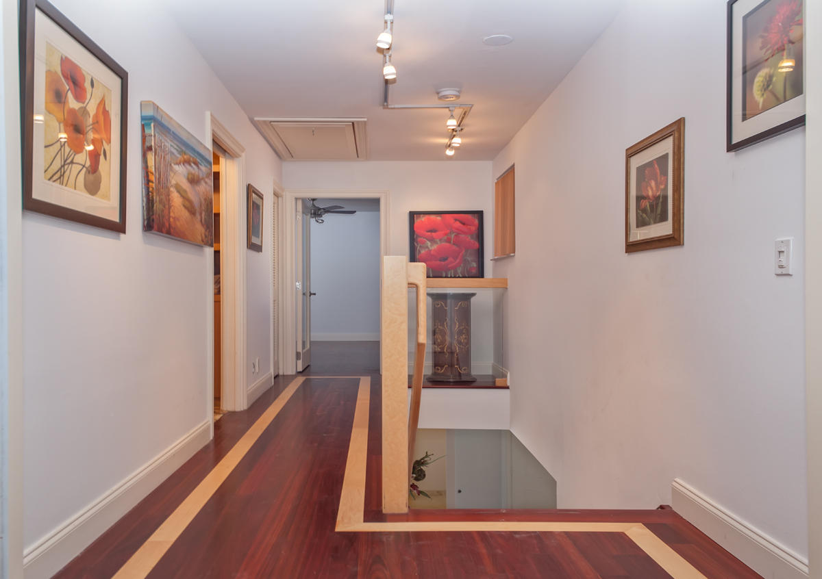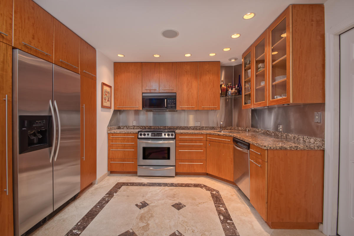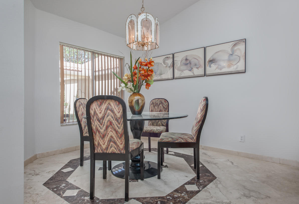 Absolutely stunning Townhome located in the outstanding convenient Boca Delmar area. This move-in ready home features many upscale upgrades. Soaring cathedral ceilings give the interior a dramatic look, while the skylights add natural light to the living spaces. Custom inlaid Saturnia marble flooring runs throughout the kitchen, dining room and living room, enhancing the open concept. The living room has a custom built-in entertainment center and built-in desk area. Sliding glass doors open to a screened lanai. The first floor master suite has 5-inch Maple plank hardwood flooring, attached master bath with walk-in shower, and walk-in closet with built-in dresser made of Cherry wood. The designer kitchen is made of custom-built Cherry cabinetry with two built-in pantry cabinets