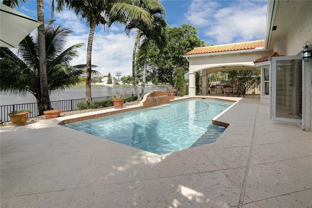STUNNING LAKE FRONT HOME with VOLUME CEILINGS, CUSTOM KITCHEN, too many upgrades to name with permitted expansion of living space. Desirable split floor plan, PRIVATE, downstairs master suite overlooking the water. Enjoy the sunset from your expansive pool deck with BROAD VIEWS OF THE LAKE, cook dinner on your built-in grill. Brazilian teak floors upstairs in bedrooms 2-4, marble downstairs. Accordion hurricane shutters, newer S-tile roof, fenced yard with fruit trees. SEEING IS BELIEVING.