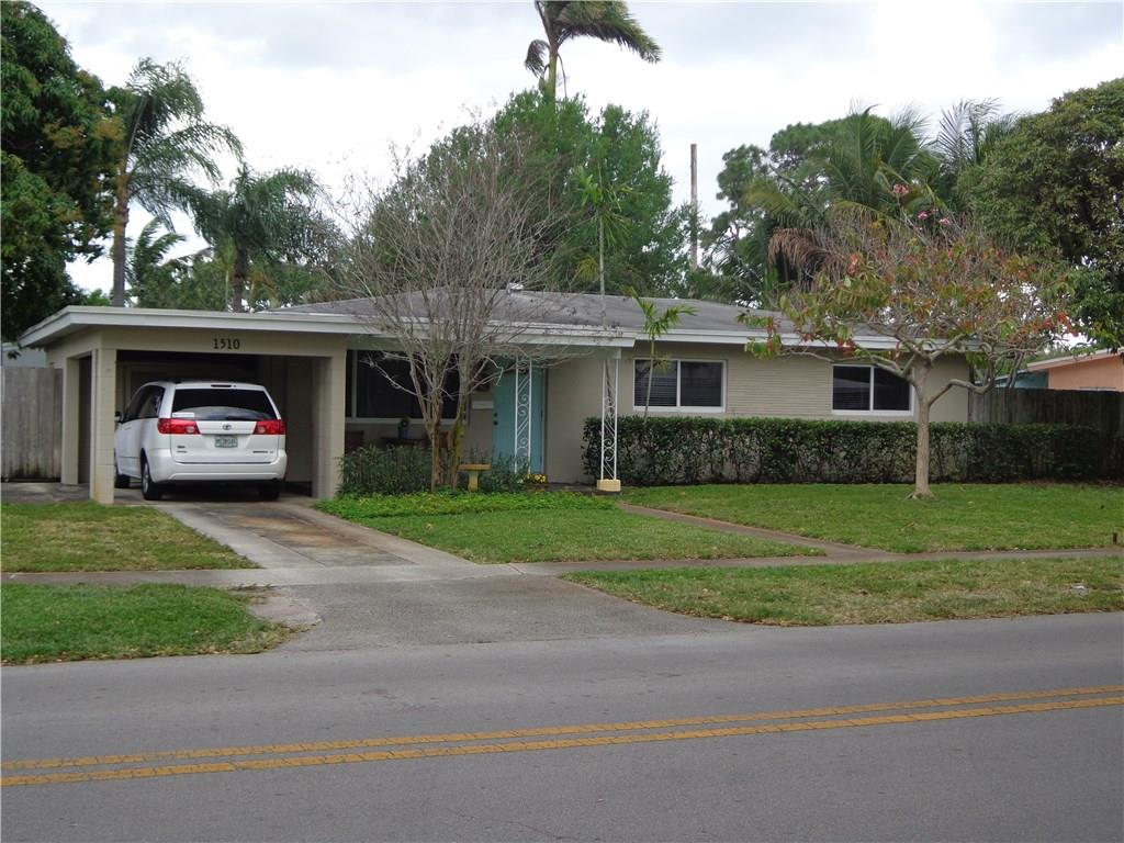 Charming 3/2 in desirable FLAMINGO PARK on a 10000' fenced corner lot with Tropical & fruit trees. Room for boat/RV parking. UPGRADED KITCHEN. Impact windows, new AC & Wtr Htr. Lawn sprinklers, Natural gas available. Large storage shed. MSTR BR has a garden view. Flamingo Park is a QUIET subdivision centrally located minutes from downtown, the beaches, Major Expressways and the Airport. Many of the homes feature Ocean Access. 3 Parks in the area & one has a BOAT RAMP