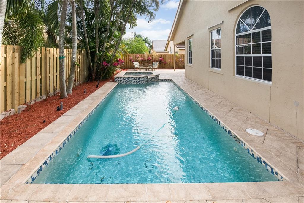 Turn key 3/2 with pool and spa. Beautifully redone kitchen with stainless steel appliances, gathering island, plus eat-in space, covered patio, freshly painted, volume ceilings throughout, interior laundry room, roof 2008, redone master bath with separate shower and soaking tub. Located in gated Embassy Lakes community. HOA has many amenities: tennis courts, parks, sidewalks , biking and jogging trails, gym, tennis, community pool and more. Close to all major shopping and great schools.
