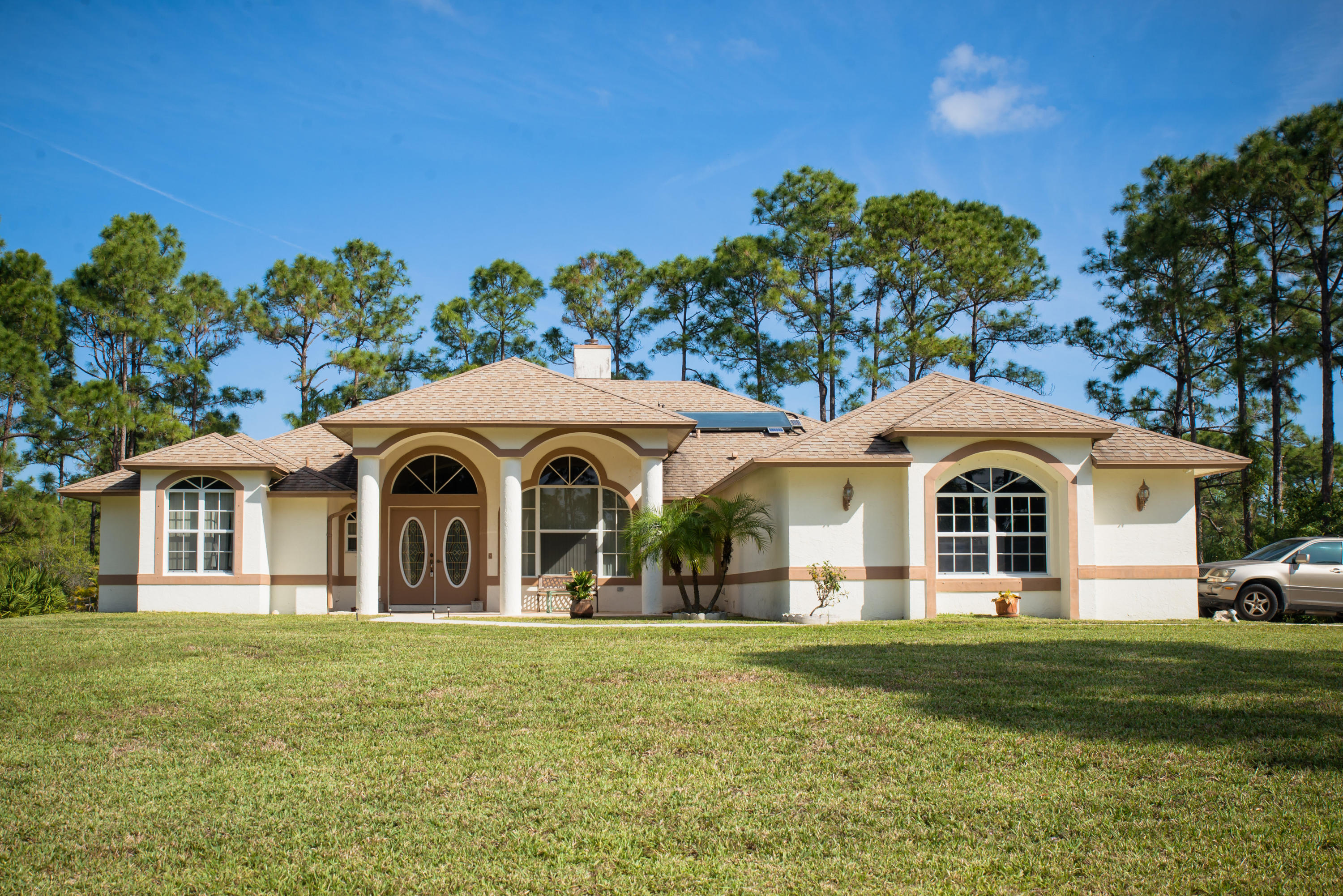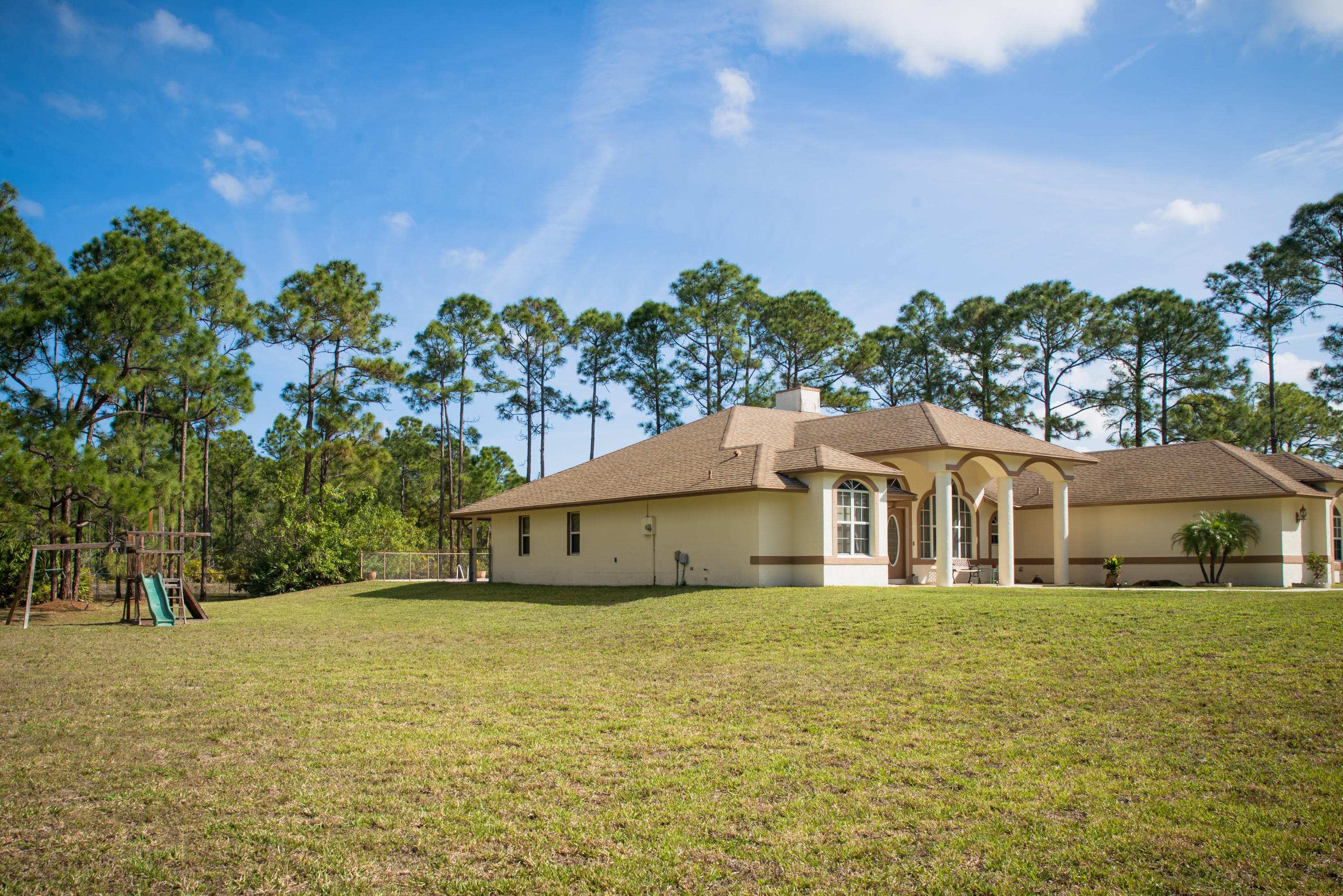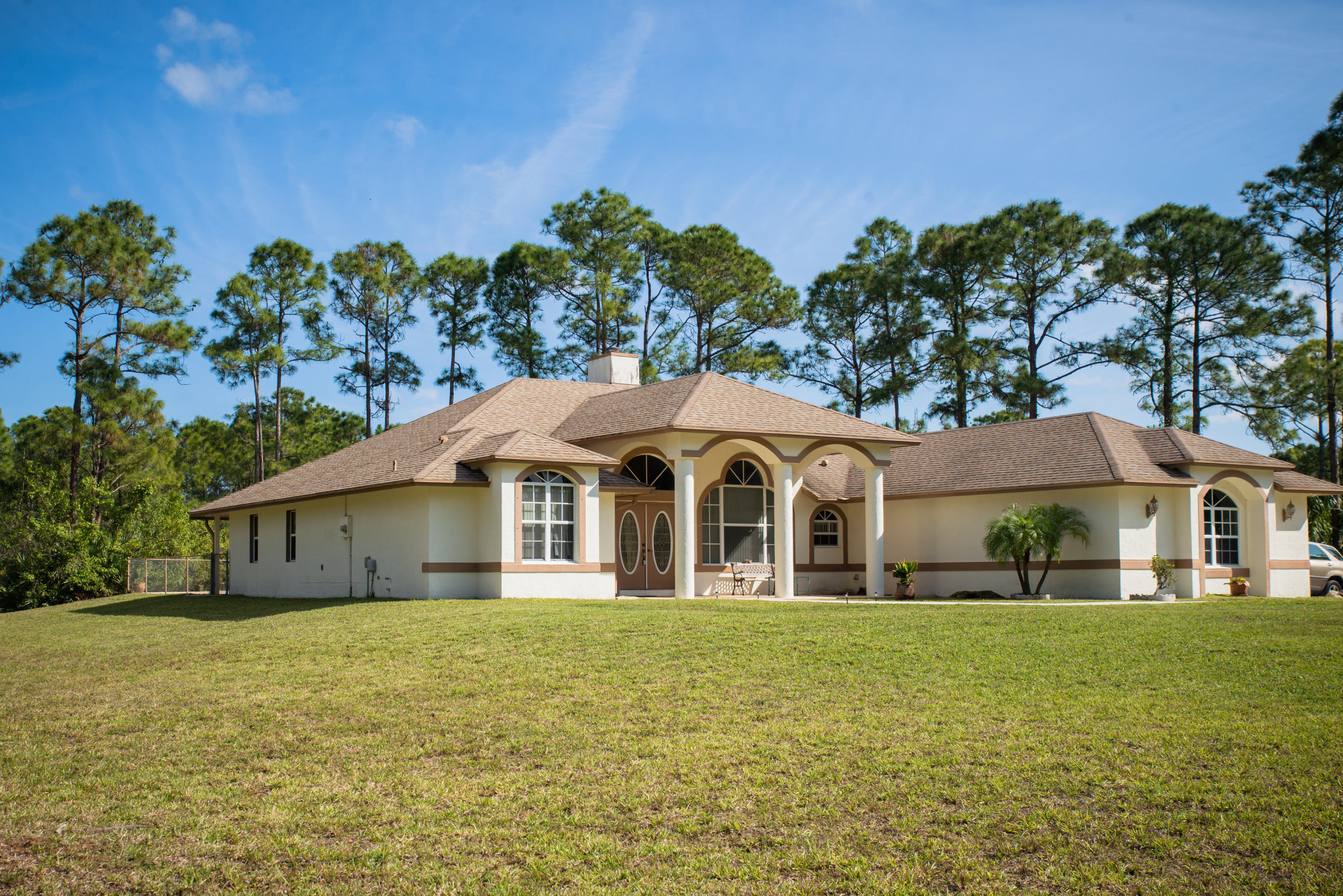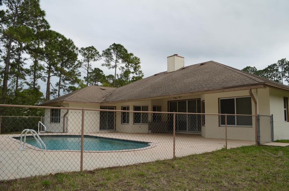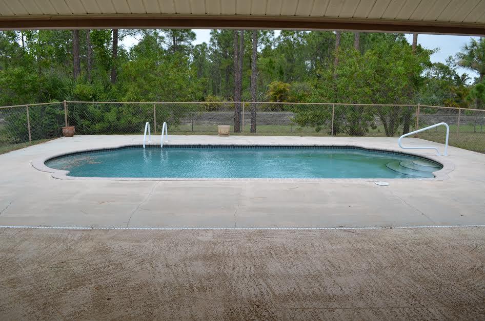 Make this acreage beauty yours! This 4 bedroom 2 bath pool home is situated on a private corner lot. The home both backs a canal and has an adjacent canal to the right of the property which adds extra privacy. Walk through your double door entry into the formal living and dining area which features a large fireplace. This home has a very open floor plan with tiled living areas and carpeted bedrooms. The kitchen is spacious and features wood cabinets, center island and tiled counter tops. The large family room is right off the kitchen which makes for easy entertaining. The large master has access to the patio and master bath features double vanities, roman tub, and spacious shower with dual shower heads. The patio/pool area has been fenced in and there is a covered portion of the patio
