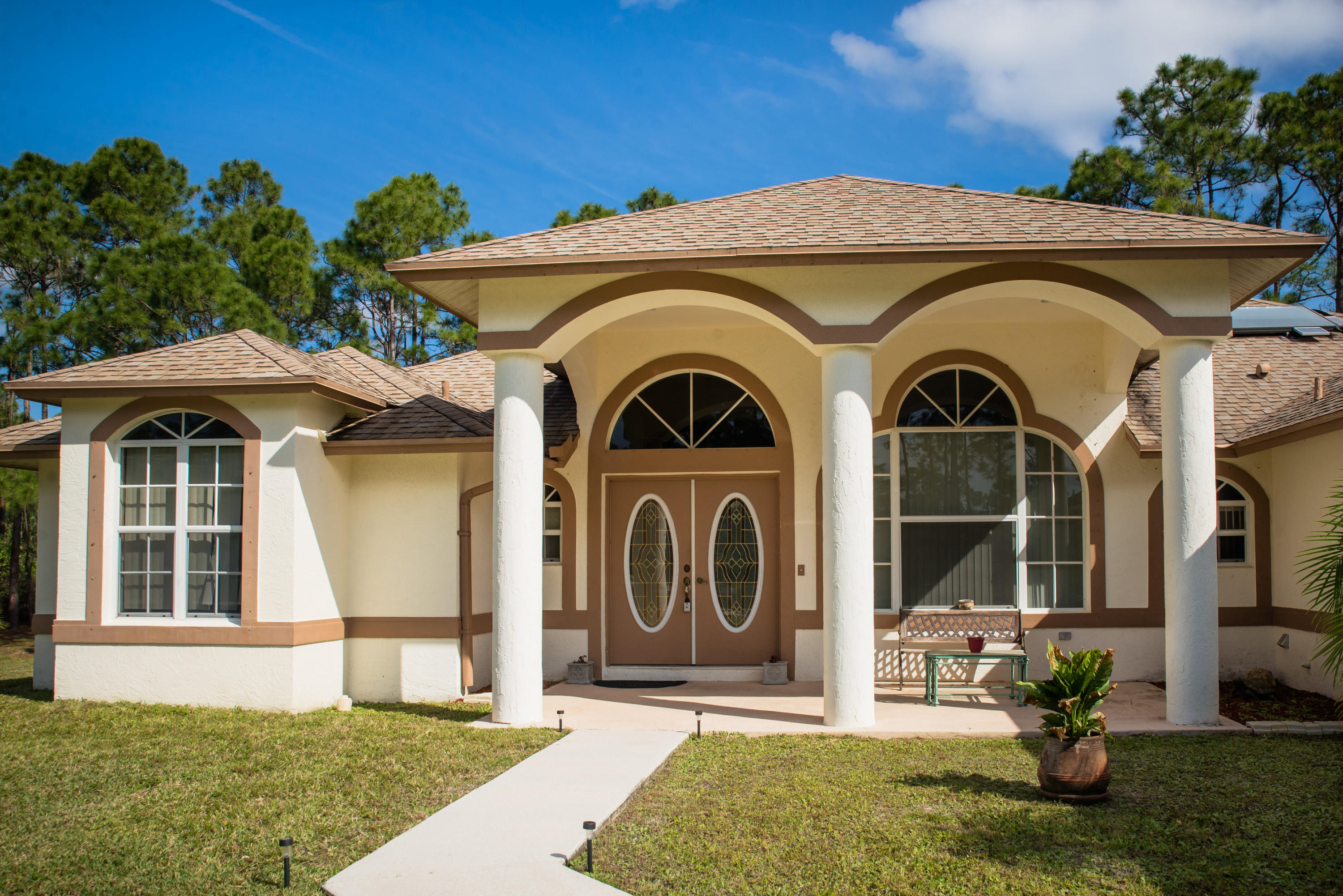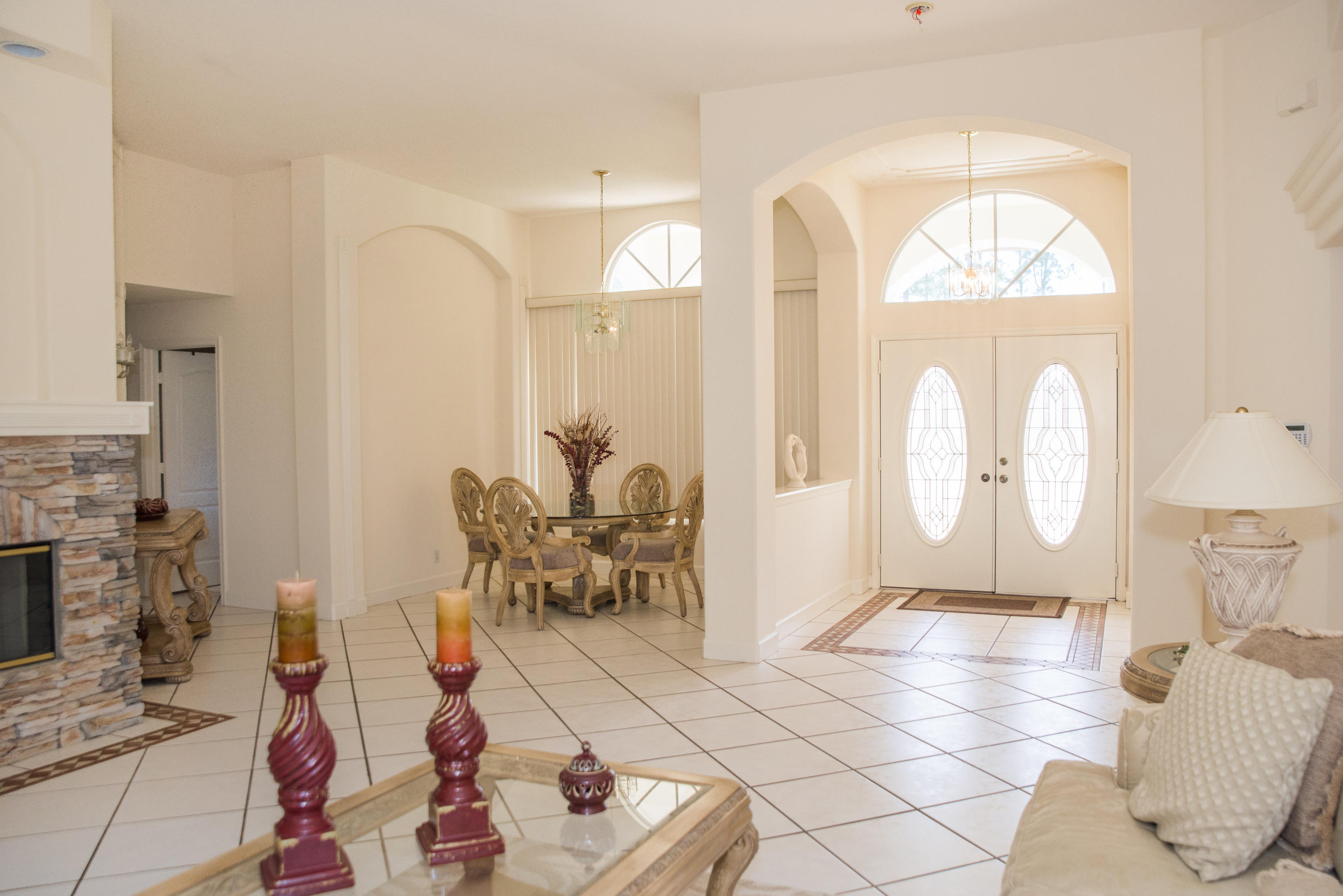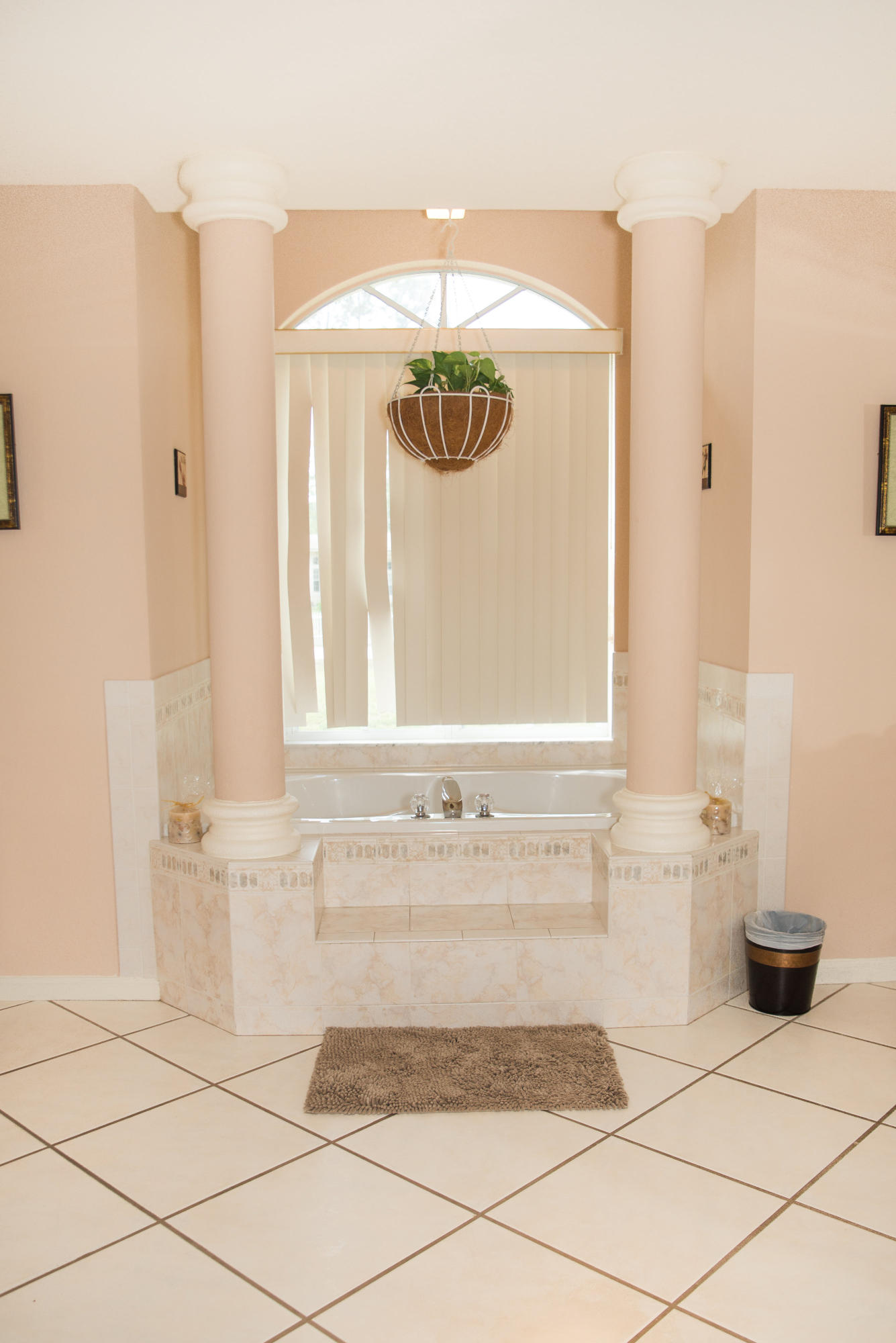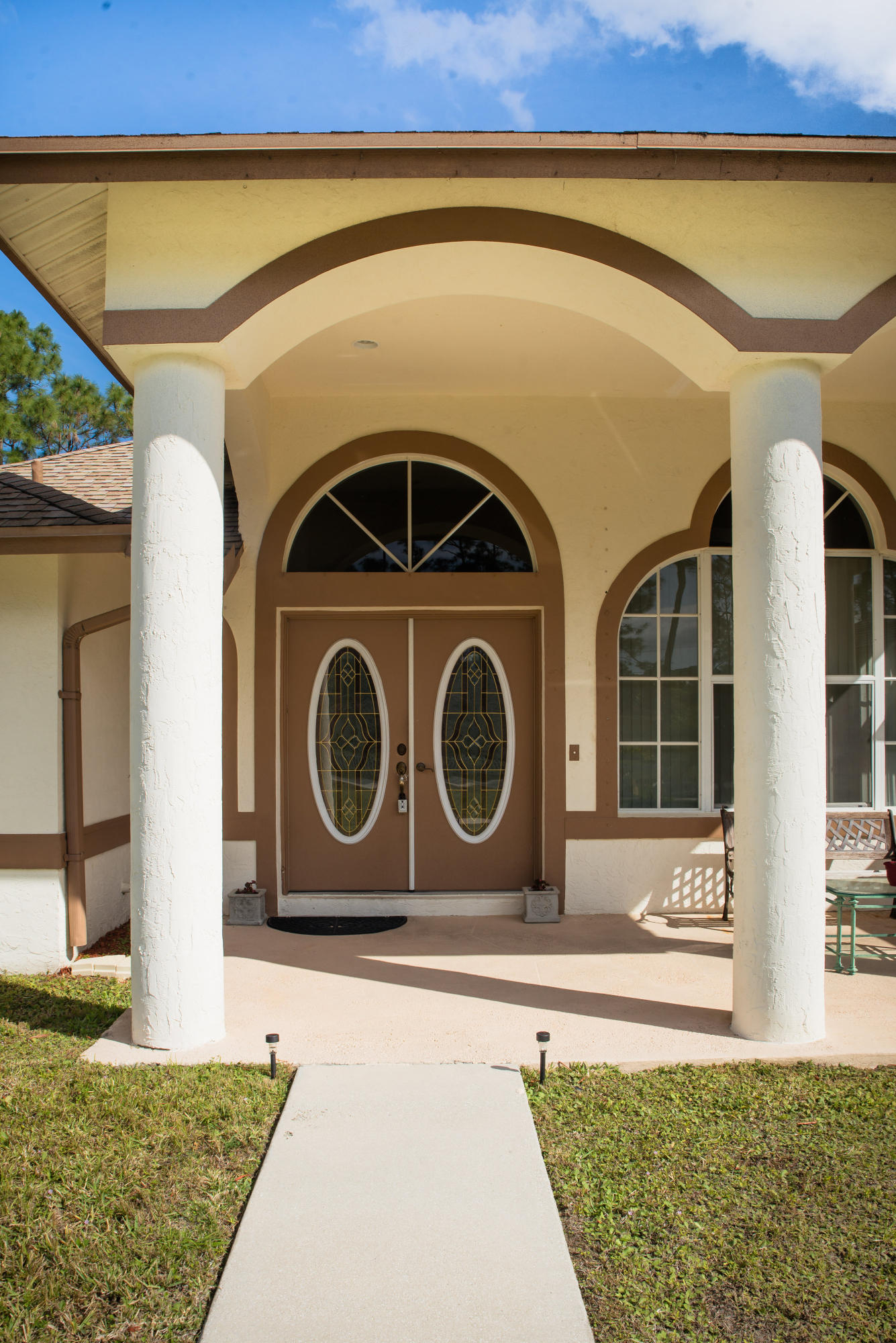 Make this acreage beauty yours! This 4 bedroom 2 bath pool home is situated on a private corner lot. The home both backs a canal and has an adjacent canal to the right of the property which adds extra privacy. Walk through your double door entry into the formal living and dining area which features a large fireplace. This home has a very open floor plan with tiled living areas and carpeted bedrooms. The kitchen is spacious and features wood cabinets, center island and tiled counter tops. The large family room is right off the kitchen which makes for easy entertaining. The large master has access to the patio and master bath features double vanities, roman tub, and spacious shower with dual shower heads. The patio/pool area has been fenced in and there is a covered portion of the patio