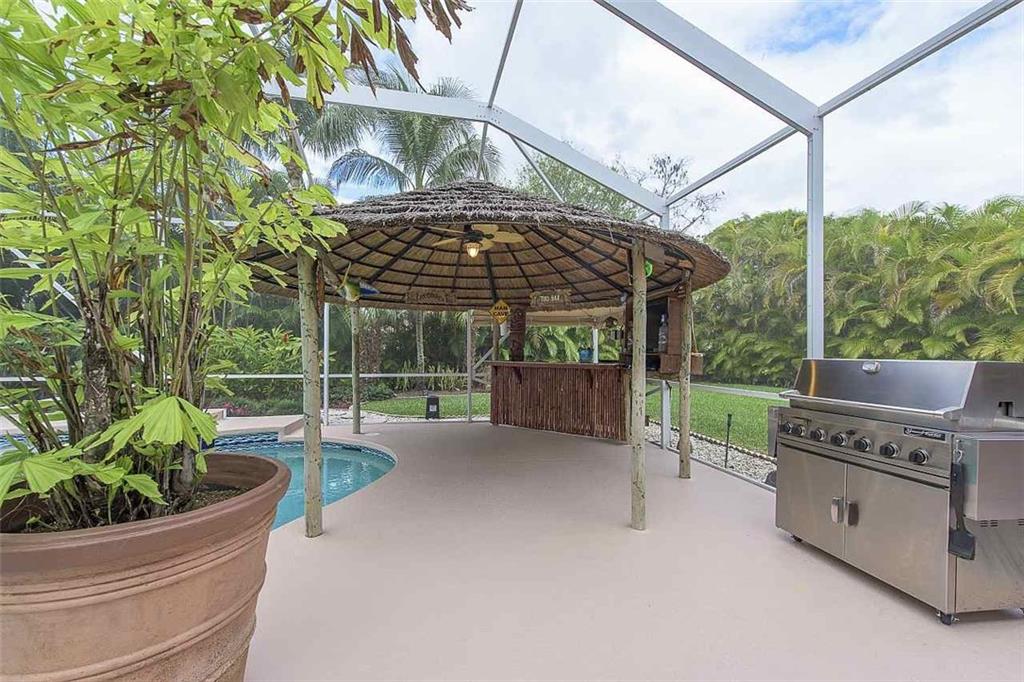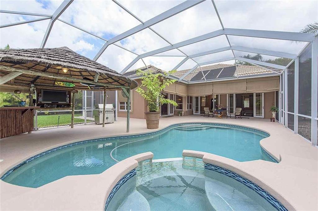Over $200K In Upgrades! 4 Beds, 3 Baths Pool Home w/3-Car Garage On Oversized Corner Lot, Amazing Back Patio Oasis w/Tiki Hut w/Bar, Frig, Rain Gutters, Solar Heated Pool, Screened-In Patio, Lush Landscaping, Newer Kitchen w/Stainless Steel Appliances, Wine Cooler, Granite Counters, Popular Tri-Split Floorplan, Updated 2nd & 3rd Baths, Newer Water Heater, Impact Doors & Accordion Hurricane Shutters, Cul-De-Sac, LED Lights Throughout, Energy Efficient Home w/Low FPL Bill, 24-Hour Guard Gated, Must See Now