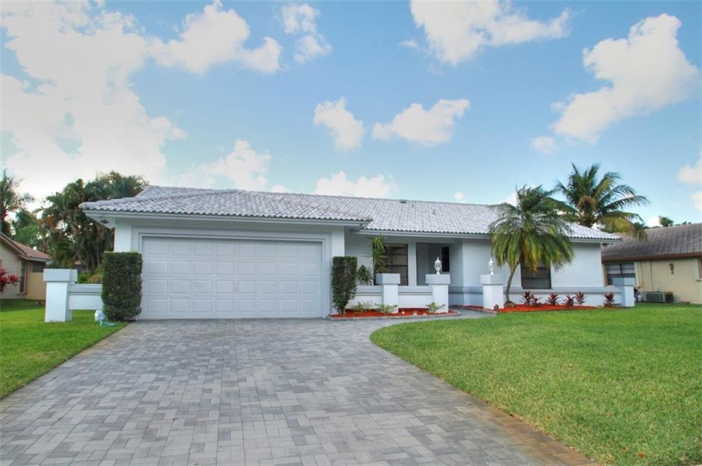 Well-priced 3 bedroom 2 bath pool home with 2-car garage in desirable Jacaranda Lakes. Living areas and master bedroom open onto expansive screened pool patio area. Super for entertaining or everyday hanging out. Features nicely remodeled baths, 2006 barrel tile roof, newer a/c, and a fabulous newly installed paver drive and walkway. Nearby park, restaurants, shopping. Couple minutes to Sawgrass Mall.